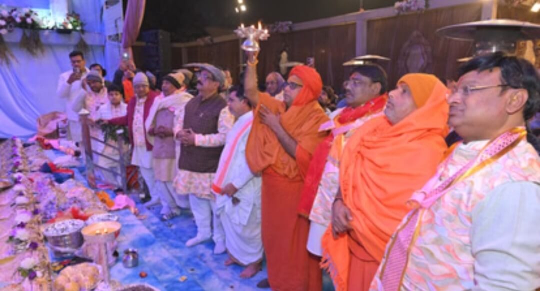 मथुरा। गोवर्धन में ब्रज की पुण्य धरा पर भक्त और भगवान का रिश्ता केवल पूजा-पाठ तक सीमित नहीं, बल्कि वह अपनत्व और समर्पण की उस भावधारा से जुड़ा होता है, जहां सेवा ही सबसे बड़ा सुख बन जाती है। इसी भाव का सजीव दर्शन सोमवार की मध्यरात्रि गोवर्धन में हुआ, जब श्री गिरिराज जी सेवा मंडल परिवार, आगरा द्वारा आयोजित छप्पन भोग एवं फूल बंगला महोत्सव के समापन पर प्रभु गिरिराज महाराज के लिए भाव-वात्सल्य से सुसज्जित शयन उत्सव मनाया गया। कार्ष्णि आश्रम, गोवर्धन में वैकुंठ लोक झांकी के मध्य स्वर्ण हंस रथ पर विराजमान गिरिराज महाराज दिनभर श्रद्धालुओं को दर्शन देते रहे। कोई मनौती लेकर पहुंचा तो कोई कृतज्ञ भाव से निहाल हुआ। जैसे-जैसे रात्रि गहराती गई, सेवकों के हृदय में यह भाव जागृत हुआ कि निरंतर भक्तों की सुध लेते-लेते प्रभु अवश्य थक गए होंगे। इसी आत्मीय अनुभूति ने शयन उत्सव का रूप ले लिया। सुगंधित इत्र से प्रभु के श्रीअंगों की कोमल सेवा की गई, प्रेमपूर्वक नजर उतारी गई और चरण कमलों को स्नेह से दबाया गया। शयन आरती के दौरान जब करुण भजन नैनन में नींद समा गई, मेरे प्रिय प्रभु के… गूंज उठा, तो वातावरण भावनाओं से भर गया।