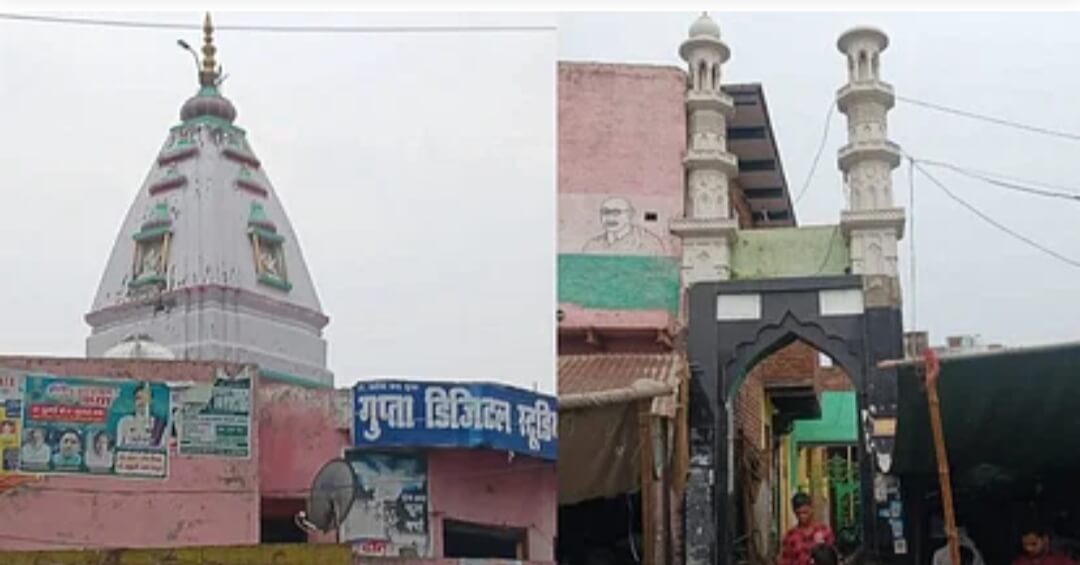 मथुरा में कौमी एकता कि मिशाल देखने को मिली है। एक भाई ने मस्जिद का निर्माण कराया तो वहीं दूसरे भाई ने मंदिर उसी के सामने मंदिर बनवाया। यह दृश्य छाता में पुराने जीटी रोड स्थित सब्जी मंडी चौराहे पर देखने को मिलता है। यह मंदिर श्री गंगा मंदिर के नाम से जाना जाता है। मोहम्मद इस्माइल पिछले 35 वर्षों से मस्जिद में मुतवल्ली (प्रबंधक) हैं। उन्होंने बताया कि नगर की यह एकमात्र मस्जिद वक्फ बोर्ड के अधीन आती है। इसका निर्माण आज से 335 वर्ष पूर्व (1107 हिजरी) में हुआ था। इसका निर्माण फतेह मोहम्मद जो कि पूर्व में फतेह सिंह ठाकुर के नाम से जाने जाते थे। उनके बड़े भाई जल सिंह ने ठीक मस्जिद के सामने मंदिर का निर्माण करवाया। इस मंदिर में श्री गंगाजी का विग्रह विद्यमान है। मंदिर की एक निजी मार्केट है। उसी प्रकार मस्जिद की भी एक निजी मार्केट है। इन दुकानों के किराए से दोनों संस्थाओं का संचालन होता है। औरंगजेब के शासन काल में निर्द ठाकुर जाति के दोनों भाई जल सिंह और फतेह सिंह शाही फौज में कार्य करते थे। छोटे भाई फतेह सिंह ने इस्लाम से प्रभावित होकर शाही फौज में ही इस्लाम धर्म स्वीकार कर लिया। दोनों ने अपनी जमीनों पर आमने-सामने मस्जिद और मंदिर का निर्माण कराया। सेवानिवृत्त पशु चिकित्सा अधिकारी पंडित मुरारी लाल शर्मा (94) ने बताया कि जब वे 20 वर्ष के थे, तब उनके पिता जो कि ब्रिटिश काल में पटवारी और गिरदावर कानून थे वह भी दोनों भाइयों की कहानी बताते। दोनों ही भाइयों में बड़ा ही प्रेम और भाईचारा था और वह उसे जमाने में इस नगर के सबसे बड़े जमींदार परिवार हुआ करते थे। छाता नगर के लगभग 80 फीसदी जमीदारी का हिस्सा इन्हीं जाति के लोगों के पास था। नगर में आज भी पुराने जीटी रोड में बाजार, पुरानी तहसील, नई तहसील व आसपास की आबादी क्षेत्र के जो भी प्राचीन मकान थे, वे वह सब इन्हीं के ही पूर्वजों के हुआ करते थे। छाता नगर का इतिहास करीब 500 वर्षों से भी पुराना है।