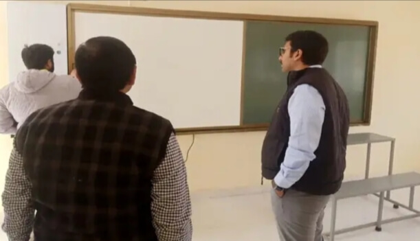 मथुरा। वृंदावन में स्थानीय हजारीमल सोमानी इंटर कॉलेज में नगर निगम मथुरा वृंदावन द्वारा राज्य स्मार्ट सिटी योजना के अंतर्गत निर्मित कराई गई स्मार्ट क्लासेस में निरीक्षण के दौरान नगर आयुक्त शशांक चौधरी ने बच्चों की क्लास लेते हुए शिक्षको से तकनीकी जानकारी ली।