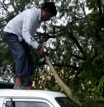 मथुरा के व्रन्दावन में अजगर निकलने से मचा हड़कंप में पिछले 3 दिन से हो रही बारिश के कारण अब जीव जंतुओं का निकलना भी शुरू हो गया है। बारिश के कारण मथुरा के वृंदावन में जिला संयुक्त चिकित्सालय के समीप अजगर निकलने से हड़कंप मच गया। लोगों के देखते ही अजगर पेड़ पर चढ़ गया जिसके बाद सूचना मिलने पर पुलिस मौके पर पहुंच गई। पुलिस ने वन विभाग को सूचना दी जिसके बाद अजगर का रेस्क्यू किया गया। जिला संयुक्त चिकित्सालय के समीप एक अजगर सांप को लोगों ने घूमते देखा। लोग जब तक पीछा कर उसे पकड़ते तब तक वह बबूल के पेड़ पर चढ़ गया। अजगर को पकड़ने के लिए लोगों ने भरसक प्रयास किया। लेकिन अंधेरा होने की वजह से वह पकड़ में नहीं आ सका।अजगर निकलने की सूचना पर वन विभाग की टीम मौके पर पहुंच गई। टीम ने अजगर सांप को पकड़ने का रेस्क्यू शुरू कर दिया। नगर निगम की गाड़ी मौके पर बुलाई। इसके बाद एक वन विभाग कर्मी उस पर चढ़ा। जिसके बाद अजगर को पेड़ से गिराया गया और फिर उसे पकड़ा गया। करीब 45 मिनट तक चले रेस्क्यू के दौरान वहां मौजूद लोगों की सांस थमी रही।जिला संयुक्त चिकित्सालय के समीप पेड़ पर चढ़ा अजगर सांप को देखने के बाद लोगों ने इसकी सूचना पुलिस को दी। मौके पर पहुंची पुलिस ने अजगर होने की पुष्टि करने के बाद इसकी सूचना वन विभाग को दी। जिसके बाद वन विभाग की टीम ने 10 फीट लंबे अजगर का रेस्क्यू किया। अजगर सांप का रेस्क्यू करने के बाद वन विभाग की टीम उसे जंगल में ले गई जहां उसे छोड़ दिया गया। वन विभाग के क्षेत्राधिकार ब्रजेश सिंह परमार ने बताया कि जंगल के रास्ते कहीं से यह आ गया संभावना है कि पेड़ पर भोजन की तलाश में चढ़ गया। अजगर का रेस्क्यू कर लिया गया है। इस दौरान वन विभाग के वन रक्षक श्याम सिंह,प्रेम सिंह व श्री गोपाल मौजूद रहे।जिस जगह पर अजगर सांप मौजूद था उसके बराबर में जिला संयुक्त चिकित्सालय है। इसके अलावा सामने की तरफ पर्यटक सुविधा केंद्र है। वृंदावन से यमुना एक्सप्रेस वे के मुख्य मार्ग पर अजगर की मौजूदगी ने लोगों को दहशत में डाले रखा। वन विभाग की टीम ने अजगर को जब सकुशल पकड़ लिया तब लोगों ने राहत की सांस ली।