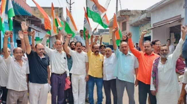 मथुरा। वृंदावन में नगर उद्योग व्यापार प्रतिनिधि मंडल के द्वारा पहलगाम की घटना के 15 दिन बाद भारत सेना के द्वारा ऑपरेशन सिंदूर के सफल होने पर हर्ष व्यक्त किया गया। नगर की अनाज मंडी में नगर उद्योग व्यापार प्रतिनिधिमंडल के कार्यकर्ता और पदाधिकारीयों ने एकत्रित होकर हिंदुस्तान जिंदाबाद के नारे लगाते हुए भारतीय सेना को सलाम करते हुए हर्ष व्यक्त किया। इस मौके पर पदाधिकारीयों के द्वारा आतिशबाजी और मिठाई बांटकर खुशी जाहिर की। इस मौके पर विस्तृत जानकारी देते हुए व्यापार मंडल के अध्यक्ष आलोक बंसल और चेयरमैन धनेंद्र अग्रवाल बॉबी ने बताया कि आज हर हिंदुस्तानी के लिए बहुत ही गर्व का विषय है। देश के प्रधानमंत्री नरेंद्र मोदी के नेतृत्व में भारतीय सेवा ने पाकिस्तान में आतंकवादी ठिकानों पर एयर स्ट्राइक कर आतंकवादियों को मुंहतोड़ जवाब दिया है। आज आतंकवादियों के ठिकानों को निशाना बनाकर उनका खात्मा किया गया है। देश के प्रधानमंत्री नरेंद्र मोदी जी के नेतृत्व में ही संभव है। आज हर देशवासी अपनी भारतीय सेना पर गर्व महसूस कर रहा है। हर देशवासी देश के प्रधानमंत्री नरेंद्र मोदी और देश की सेवा के साथ खड़ा है। इस मौके पर लक्ष्मी नारायण दीक्षित, आनंद गुप्ता, भीमसेन अग्रवाल, चंद्र प्रकाश अग्रवाल, बालकिशन वार्ष्णेय, लक्ष्मी नारायण सैनी, मुकेश शर्मा, वीरेंद्र सिंह सिसोदिया आदि मौजूद रहे।