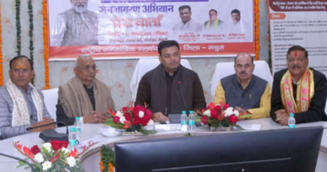 मथुरा। मनरेगा योजना के नाम को बदले जाने पर विपक्ष लगातार हमलावर है। उनके सवालों के जवाब में प्रभारी मंत्री संदीप सिंह ने कहा कि वीबी जी राम जी योजना महात्मा गांधी की विचारधारा से प्रेरित है। महात्मा गांधी प्रभु श्रीराम के भक्त थे। इस योजना को गांधीजी की विचारधारा ग्राम स्वराज से जोड़ा गया है। उन्होंने कहा कि विपक्षी आमजन को भ्रमित कर रहे हैं। राज्यमंत्री बेसिक शिक्षा संदीप सिंह मथुरा के जिलाधिकारी कार्यालय में वीबी जी राम जी रोजगार गारंटी योजना के बारे में जानकारी देने के लिए आए थे। उन्होंने कहा कि राष्ट्रपिता की भावना को ठेस पहुंचाने के लिए योजना को लागू नहीं किया है। जी राम जी योजना श्रमिकों के जीवन की लाइफ लाइन है। जो पुरानी व्यवस्था मनरेगा से पूरी तरह बदली हुई है। मनरेगा में 100 दिन के काम की गारंटी दी जाती थी, लेकिन काम 50 दिन भी नहीं मिल पाता था। उसमें भी श्रमिकों को भुगतान के लिए महीनों इंतजार करना पड़ता था। अब जी राम जी योजना में 125 दिन काम दिया जाएगा। इसके अतिरिक्त 60 दिन और काम दिया जाएगा। भुगतान भी 7 दिन में होगा। अगर किसी कारणवश भुगतान रुक जाता है तो उतने दिनों की ब्याज के साथ पूरा भुगतान किया जाएगा। तकनीकी से योजना का संचालन हो रहा है। इस दौरान राज्यसभा सांसद तेजवीर सिंह, विधायक पूरन प्रकाश, मेघ श्याम सिंह, महापौर विनोद अग्रवाल समेत राजनैतिक दलों के जिलाध्यक्ष एवं प्रशासनिक अधिकारी मौके पर मौजूद रहे।
