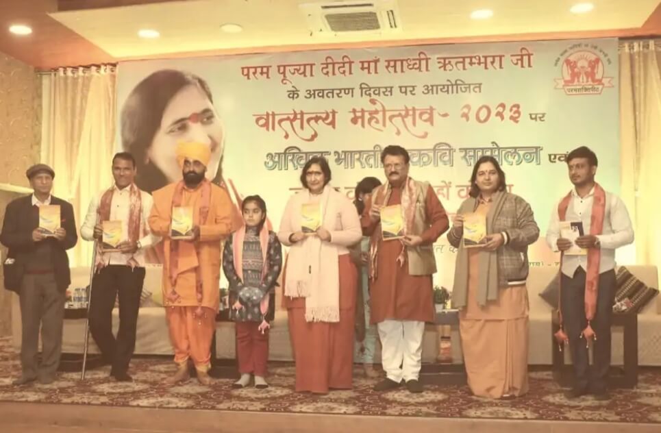 मथुरा। वृंदावन में वात्सल्य ग्राम महोत्सव के पहले दिन मंगलवार को पद्म विभूषण साध्वी ऋतंभरा ने दीप प्रज्वलित कर कवि सम्मेलन का शुभारंभ किया। इस दौरान देश के विभिन्न अंचलों से आए कवियों ने अपनी रचनाओं से श्रोताओं को भाव-विभोर किया। कार्यक्रम की शुरुआत आगरा की डॉ. रुचि चतुर्वेदी द्वारा सरस्वती वंदना से की गई। इसके बाद सुहाग नगरी फिरोजाबाद से आए गीतकार यशपाल यश ने अपनी सशक्त रचनाओं से सामाजिक यथार्थ और जीवन संघर्ष को प्रभावशाली ढंग से पेश किया। राजस्थान के डीग से आए हास्य-व्यंग्य कवि सुरेंद्र सार्थक ने अपनी रोचक रचनाओं से श्रोताओं को खूब गुदगुदाया। दिल्ली से आए वीररस के कवि मनवीर मधुर ने सनातन परंपरा, प्रेम, भक्ति और वात्सल्य पर आधारित काव्य पाठ किया। डॉ. रुचि चतुर्वेदी ने एक बार फिर गीतों की गंगा बहाते हुए वात्सल्य ग्राम और साध्वी ऋतंभरा के प्रति भावपूर्ण श्रद्धा व्यक्त की। कार्यक्रम में नोएडा से आए हास्य कवि वेद प्रकाश वेद, दिल्ली से आए वीर रस के कवि गजेंद्र सोलंकी, सिंगरौली से आईं विजयलक्ष्मी ‘संवेदना’ और गाजियाबाद से आए कवि रूप चौधरी ने अपनी रचनाएं पेश कीं। कार्यक्रम का कुशल संचालन डॉ. उमाशंकर राही ने किया। इस मौके पर आईसी अग्रवाल, महेश खंडेलवाल व रूप चौधरी द्वारा सभी कवियों को शाल ओढ़ाकर और प्रतीक चिह्न भेंट कर सम्मानित किया गया। आयोजन में बड़ी संख्या में साहित्य प्रेमी उपस्थित रहे और देर रात तक काव्य रस का आनंद लेते रहे।