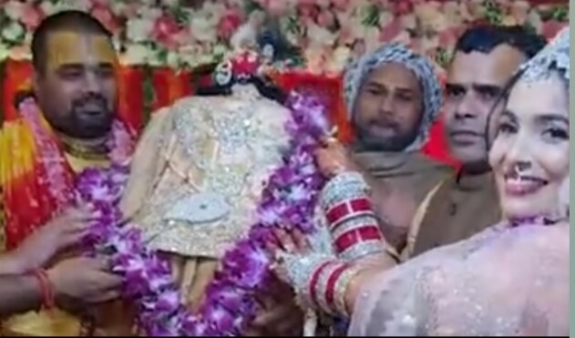 मथुरा। फरीदाबाद की कृष्ण भक्त प्रिया ने अनूठा आयोजन किया। एक वर्ष पहले कान्हा के साथ विवाह किया और अब शादी की सालगिरह मनाई। फरीदाबाद की प्रिया बचपन से गोवर्धन और वृंदावन आती थीं। इस दौरान वह कृष्ण भक्त हो गई। उन्होंने एमबीए और फिर पीएचडी की। वालीबाल खिलाड़ी प्रिया की स्पोर्ट्स कोटा से चंडीगढ़ में फोरेंसिक एसआइ के पद पर नौकरी लगी। कुछ दिन के बाद नौकरी छोड़ दी। फिर सब कुछ छोड़कर वृंदावन आ गईं। बीते वर्ष 22 नवंबर को उन्होंने लड्डू गोपाल से वृंदावन में शादी कर ली थी। उनके लिए इस बार करवाचौथ का व्रत भी रखा। बुधवार को उन्होंने वृंदावन में धूमधाम से अपनी शादी की सालगिरह भी मनाई। इसके लिए एक होटल बुक किया गया। परिचितों को आमंत्रित किया गया। भगवान श्रीकृष्ण की प्रतिमा को सजाया गया। उनको सेहरा पहनाया गया। दुल्हन की तरह सजी प्रिया ने भजनों पर नृत्य भी किया।
