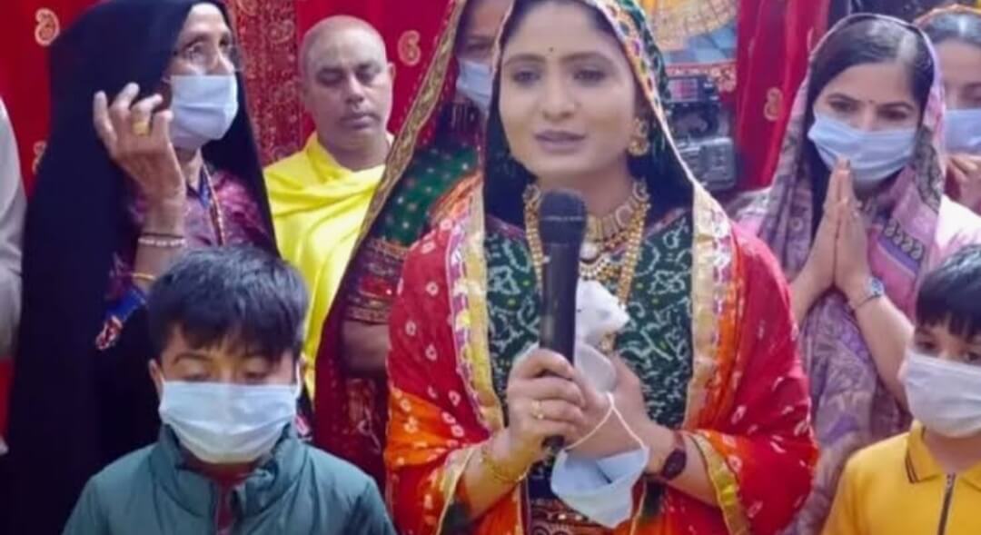 मथुरा। वृंदावन में श्रीराधारानी के साधक संत प्रेमानंद के आश्रम में हर दिन देश दुनिया के श्रद्धालु आशीर्वाद लेने पहुंच रहे हैं। बुधवार को गुजरात की भजन गायिका गीता रबारी ने एकांतिक वार्ता के समय संत प्रेमानंद के दर्शन कर आशीर्वाद लिया और कृष्ण भजन सुनाया। तो संत प्रेमानंद गदगद हो गए। परिक्रमा मार्ग स्थित श्रीराधा केलिकुंज में बुधवार की सुबह साढ़े सात बजे पहुंची कच्छ की कोयल के नाम से प्रसिद्ध गुजराती भजन गायिका गीता रबारी ने संत प्रेमानंद से मुलाकात की। उन्हें एक भजन भी सुनाया। उनका भजन सुनकर बहुत प्रसन्न हुए। एकांतिक वार्ता के दौरान एक विदेशी महिला ने संत प्रेमानंद से वार्तालाप किया।