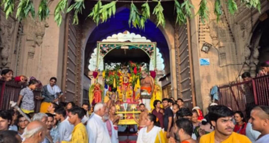 मथुरा। वृंदावन में तीर्थनगरी वृंदावन के सुप्रसिद्ध श्री रंगनाथ मंदिर में श्रीकृष्ण जन्माष्टमी का पर्व सोमवार को रोहिणी नक्षत्र के अनुसार पारंपरिक भक्ति भाव के साथ मनाया गया। इस अवसर पर श्री गोपाल जी के विग्रह का विधिवत पंचामृत अभिषेक किया गया, जिसके बाद ठाकुर जी को भव्य रूप से शृंगारित कर झूले में विराजित किया। नंद बाबा और यशोदा के रूप में सजे आर. कृष्णन और सुधा कृष्णन ने ठाकुर जी को झूला झुलाते हुए भावपूर्ण भजन प्रस्तुत किए, जिससे वातावरण भक्तिरस में सराबोर हो गया। नंदोत्सव के अंतर्गत आयोजित लट्ठे के मेले में पहलवानों ने अपने जौहर दिखाने का प्रयास किया। परंपरागत रूप से लट्ठ पर चढ़कर ध्वज (पताका) को छूने या उतारने की परंपरा रही है, लेकिन इस बार ध्वज को सही ढंग से प्राप्त न कर पाने के कारण मंदिर प्रबंधन और भक्तगणों में कुछ हद तक निराशा देखी गई।