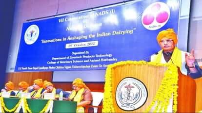 मथुरा स्थित उत्तर प्रदेश पंडित दीनदयाल उपाध्याय पशु चिकित्सा विज्ञान विश्वविद्यालय एवं गो अनुसंधान संस्थान (वेटरनेरी विश्वविद्यालय) में रविवार को नेशनल एकेडमी ऑफ डेरी साइंस का सातवां दीक्षांत समारोह आयोजित किया गया। डेयरी क्षेत्र में 14 वैज्ञानिकों को फेलोशिप तथा सोलह को एसोसिएशन फेलोशिप प्रदान की। मुख्य अतिथि पशुधन मंत्री धर्मपाल सिंह ने पुरातन काल से आधुनिक युग तक गो-मूत्र एवं गाय के गोबर के धार्मिक महत्व को बताया। देश की अर्थव्यवस्था में कृषि एवं डेयरी क्षेत्र का सकल घरेलू उत्पाद में योगदान बताते हुए विश्वविद्यालय के वैज्ञानिकों से प्रदेश को अंडे एवं मछली के उत्पादन में आत्मनिर्भर बनाने के लिए कहा। किसानों की तरक्की के लिए पंचगव्य उत्पादों को बढ़ावा देने पर बल दिया। विशिष्ट अतिथि गुरु अंगददेव वेटरनेरी एंड एनिमल साइंस यूनीवर्सिटी लुधियाना के कुलपति डॉ. वीके तनेजा ने देशी गाय के संरक्षण एवं संवर्धन को और अधिक प्रभावी बनाने पर बल दिया। फीड इंडस्ट्री को भी सुदृढ़ करने के लिए नीतियां बनाने पर जोर दिया। कहा कि किसान और पशु पालकों की आर्थिक स्थिति मजबूत करने के लिए पंचगव्य उत्पादों को बढ़ावा दिया जाना जरूरी है। उद्योगपतियों से कीटनाशक एवं घातक रसायनों को गो-मूत्र एवं गोबर से प्रतिस्थापित किए जाने के बारे में कहा। एकेडमी के अध्यक्ष डॉ. एके श्रीवास्तव व सचिव डॉ. आरके मलिक ने एकेडमी की भूमिका एवं उपयोगिता के विषय में जानकारी दी। मथुरा एलपीटी विभाग के विभागाध्यक्ष डॉ. विकास पाठक को डेयरी क्षेत्र में उल्लेखनीय कार्योँ के लिए फेलोशिप प्रदान कर सम्मानित किया। सेक्रेट्री नेशनल डेयरी साइंस डॉ. एके त्यागी, राष्ट्रीय डेयरी अनुसंधान करनाल के निदेशक एवं कुलपति डॉ. धीर सिंह, डॉ. एमएस चौहान कु लपति पंतनगर, डॉ. रामेश्वर सिंह कु लपति पटना, बिहार शामिल हुए।