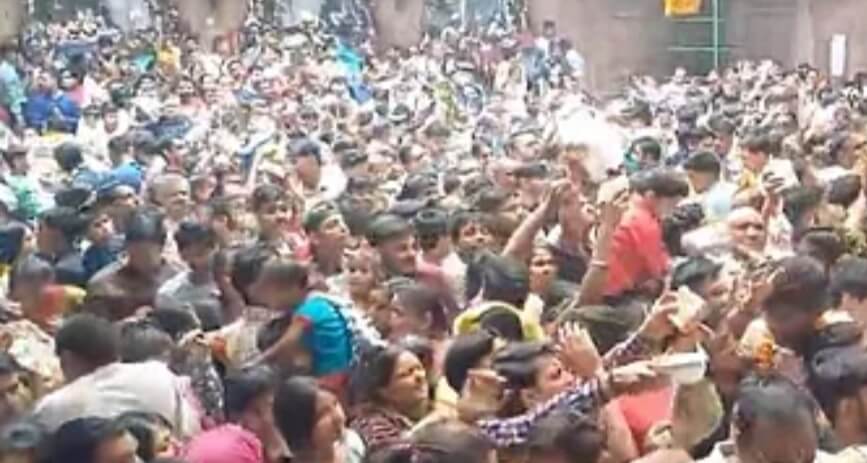 मथुरा। वृंदावन में ठाकुर श्रीबांकेबिहारी महाराज के दर्शन के लिए भक्तों का भीड़ उमड़ पड़ी। शनिवार तड़के से ही श्रीबांकेबिहारी मंदिर के बाहर भक्त जुटने लगे। तय समय पर जैसे ही पट खुले मंदिर में भक्तों का रेला प्रवेश कर गया। भव्य फूल बंगले के मध्य विराजमान ठाकुरजी ने भक्तों को दर्शन दिए। बांकेबिहारी की मनोहरी छवि के दर्शन पाकर भक्त धन्य हुए। बांकेबिहारी मंदिर के बाहर सुबह से ही भक्तों की भारी भीड़ जुटना शुरू हो गई। मंदिर के पट खुलते ही रैला उमड़ पड़ा। इस दौरान सुरक्षाकर्मियों को भीड़ नियंत्रण के लिए काफी मशक्कत करनी पड़ी।