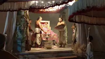 मथुरा। व्रन्दावन में रंगनाथ भगवान के दस दिवसीय ब्रह्मोत्सव का समापन हो गया। उत्सव के 10वें दिन शनिवार देर रात भगवान रंगनाथ माता गोदा जी के साथ पुष्पक विमान (रथ) में विराजमान होकर निकले। पुष्पों से सुसज्जित विमान में विराजमान होकर निकले भगवान के दर्शन के लिए जन सैलाब उमड़ पड़ा। भगवान के स्वागत के लिए नगर वासियों ने कहीं फूलों से तो कहीं रंगों से रंगोली बनाई। रंगनाथ मंदिर से भगवान की सवारी विभिन्न प्रकार के फूलों से सुसज्जित पुष्पक विमान में विराजमान होकर निकली। इस पुष्पक विमान को वृंदावन और कोलकाता के कारीगरों ने 24 घंटे से ज्यादा मेहनत कर तैयार किया। पुष्पक विमान में विराजमान भगवान रंगनाथ और माता गोदा जी के दर्शन बेहद ही मनोहारी थे। जिस वाहन में भगवान विराजमान थे उस पर की गई आकर्षक कलाकारी भक्तों को आनंद प्रदान कर रही थी। केले के पेड़ से बनाए मोर हों या फिर विमान के आगे लगा हंस विमान की सुंदरता को चार चांद लगा रहे थे। भगवान रंगनाथ के ब्रह्मोत्सव के अंतिम दिन निकाली गई पुष्पक विमान की सवारी से पहले भगवान का पुस्पर्चन हुआ। मंदिर के पुजारियों ने वैदिक मंत्रों के बीच भगवान को पुष्प अर्पित किए। इससे पहले भगवान को 12 तरह के भोग लगाए और 12 आरती की। पश्चिम द्वार से भगवान की सवारी जब आगे बढ़ी तो रास्ते भर में भक्तों ने फूलों और रंगों से बेहद ही आकर्षक रंगोली बना रखी थी। जगह जगह महा आरती की गई। देर रात भगवान की छवि के दर्शन करने के लिए हजारों श्रद्धालु सड़कों पर मौजूद रहे। मंदिर परिसर से लेकर बड़े बगीचा तक श्रद्धालु ही श्रद्धालु नजर आ रहे थे। रात करीब 1 बजे भगवान की सवारी नगर भ्रमण करने के बाद पुनः मंदिर परिसर पहुंची। जहां गरुड़ स्तंभ के समीप मंडप में भगवान को विराजमान किया गया। इसके पश्चात मंदिर के महंत,पुजारी आदि ने भगवान से पूरे उत्सव के दौरान किसी प्रकार का अपराध,भोग लगाने में विलम्ब या प्रभु की सेवा में अगर कोई कमी रह गई हो इसके लिए क्षमा प्रार्थना की गई।