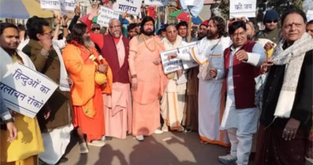 मथुरा। वृंदावन/ बांग्लादेश में हिंदुओं पर लगातार हो रहे अत्याचारों के विरोध में वृंदावन में जगह जगह प्रदर्शन किया गया। चिंतामणि कुंज के सामने श्रीकृष्ण जन्मभूमि मुक्ति न्यास के आह्वान पर साधु-संतों और सामाजिक प्रतिनिधियों ने बांग्लादेश में हिंदुओं के साथ हो रहे जुल्म की कड़ी निंदा की। श्रीकृष्ण जन्मभूमि मुक्ति न्यास के अध्यक्ष महेंद्र प्रताप सिंह एडवोकेट ने कहा बांग्लादेश अपनी हरकतों से बाज आए। चिंतामणि कुंज के पीठाधीश्वर डॉक्टर आदित्यानंद जी महाराज ने कहा कि बांग्लादेश में हिंदू अल्पसंख्यक हैं और उन्हें योजनाबद्ध तरीके से डराया-धमकाया जा रहा है। महामंडलेश्वर श्रीकृष्णानंद महाराज ने कहा कि बांग्लादेश में कट्टरपंथी ताकतें हिंदुओं को निशाना बना रही हैं। पद्मश्री लक्ष्मी गौतम ने कहा कि जब समाज की महिलाएं एकजुट होती हैं तब परिवर्तन निश्चित होता है। इस दौरान चिंतामणि कुंज के पीठाधीश्वर डॉक्टर आदित्यानंद महाराज, पद्मश्री लक्ष्मी गौतम, साध्वी शकुंतला, हनुमान टेकरी के महंत दशरथदास महाराज, महामंडलेश्वर श्रीकृष्णानंद महाराज, संत श्यामानंद महाराज, श्यामसुंदर ब्रजवासी, इस्कॉन के बाबा बलरामदास महाराज, देवानंद महाराज, रामदास महाराज, कथावाचक अतुलकृष्ण शास्त्री, छवि वार्ष्णेय, राधा मोहन और डॉक्टर राम आदि मौजूद रहे।