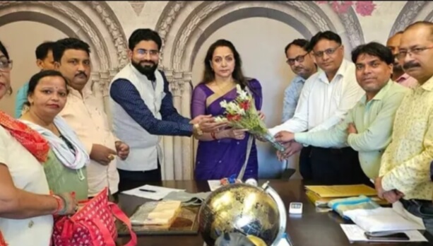 मथुरा। बाल शिक्षा प्रबंधक समिति के पदाधिकारियों ने सांसद हेमा मालिनी से नगर निगम द्वारा विद्यालयों पर लगाए गए टैक्स और बेसिक शिक्षा विभाग द्वारा काफी समय बीत जाने पर उदय कोड जारी न करने की शिकायत की है। पदाधिकारियों ने संसद से अनुरोध किया कि वह शिक्षक सुरक्षा बिल संसद में पारित करवाने की पहल करें तथा नगर निगम से टैक्स भी विद्यालय पर समाप्त करने की कार्रवाई भी करें। समिति के पदाधिकारियों ने मुलाकात के दौरान सांसद हेमामालिनी को बताया कि विद्यालयों को udies कोड विभाग द्वारा जारी नहीं किया जा रहा है जिससे बच्चों को पेन नं जारी नही हो पा रहे जिस कारण बच्चों को अन्य विद्यालय में प्रवेश में परेशानी का सामना करना पड़ रहा है। नगर निगम द्वारा विद्यालयों पर ठोस अवशिष्ट कर लगा दिया है जो कि संगत नहीं । इस अवसर पर समिति के अध्यक्ष विनीत मौर्य सचिव सुरेश नागर कोषाध्यक्ष चेतन सिसोदिया उपाध्यक्ष अर्पित जादौन राजीव राठौड़ मंत्री रिंकू शर्मा गोवर्धन अध्यक्ष निरोती सिंह मनोज कुमार अंजू शर्मा आदि मौजूद रहे।