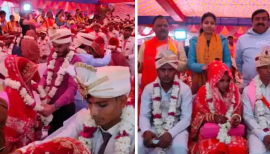 मथुरा में छाता तहसील के कोसीकलां शनिदेव धाम में मुख्यमंत्री सामूहिक विवाह योजना के अंतर्गत विवाह समारोह कार्यक्रम आयोजित किया गया। इस मौके पर विवाह समारोह कार्यक्रम का शुभारंभ समाजसेवी तरुण सेठ, सीमा रानी, कथा व्यास मनमोहन शास्त्री ने ब्रज राज भगवान श्रीकृष्ण की प्रतिमा के समक्ष वैदिक मंत्रों के साथ दीपप्रज्वलन करके किया। इस अवसर पर व्यापारी कल्याण बोर्ड के अध्यक्ष पूर्व मंत्री रविकांत गर्ग, ओमेक्स ग्रुप के संचालक जयभगवान गोयल, उपजिलाधिकारी श्वेता सिंह, तहसीलदार मनोज वार्ष्णेय, रामहरि यदुवंशी, नगरपालिका कोसीकला के अधिशासी अधिकारी उमेश कुमार शर्मा, कार्यवाहक अधिकारी योगेंद्र शर्मा सहित सामाजिक लोग मच पर मौजूद रहे। वहीं सामूहिक विवाह समारोह कार्यक्रम में हजारों लोगों ने अपनी उपस्थिति दर्ज कराकर नव दंपति जोड़ों को अपना आशीर्वाद देकर कार्यक्रम की प्रशंसा की। इस दौरान ब्रज की धरती पर आयोजित सामूहिक विवाह समारोह को लेकर भगवान श्री कृष्ण और राधा की मनमोहक आकर्षक झांकी और ब्रज की होली का कार्यक्रम आयोजित किया गया। जिसका सभी आगंतुकों ने जमकर आनंद लेते हुए नाचने गाने पर मजबूर हो गए। जिसे देखकर हर कोई आनंदित होता हुआ नजर आया। इस अवसर पर मौजूद समाजसेवियों राजनीतिक लोगों एवं हजारों दर्शकों ने 65 जोड़ों पर पुष्प की वर्षा कर स्वागत किया। उप जिलाधिकारी तहसीलदार ने नव दंपति जोड़ों को अपना आशीर्वाद दिया। मुख्यमंत्री सामूहिक विवाह योजना के तहत आयोजित कार्यक्रम में जोड़ो को 31 हजार रुपये की सहायता राशि देने का प्रावधान किया गया है। ताकि नवदम्पति जोड़े आत्मनिर्भर बन सके। इस बारे में मंच से लोगों को संबोधित करते हुए व्यापारी कल्याण बोर्ड के चेयरमैन रविकांत गर्ग एवं उप जिलाधिकारी स्वेता सिंह ने जानकारी दी।