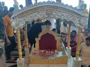 मथुरा। बरसाना में भक्त ने राधा रानी को हीरो, सोना,चांदी से बना सिंहासन किया दान