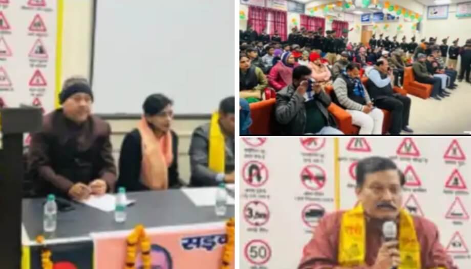 मथुरा। शासन के निर्देशानुसार सड़क सुरक्षा माह का उद्घाटन श्री पूरन प्रकाश विधायक बलदेव के द्वारा तथा वरिष्ठ सहायक संभागीय परिवहन अधिकारी (प्रथम दल) श्री लक्ष्मण प्रसाद, वरिष्ठ सहायक संभागीय प्रशासन अधिकारी श्री प्रदीप कुमार सिंह, सहायक संभागीय परिवहन अधिकारी (द्वितीय दल) श्री मनोज कुमार वर्मा, श्री राकेश निगम (यात्री कर) अधिकारी, श्रीमती नीलम मिश्रा (यात्री कर) अधिकारी, श्रीमती नीतू शर्मा (RIT), सार्वजनिक लोक निर्माण विभाग , शिक्षा विभाग, बेसिक तथा उच्च शिक्षा विभाग , पुलिस विभाग, एनसीसी के 150 जवान विभिन्न स्कूलों से आए लगभग 75 छात्र एवं छात्राए परिवहन विभाग के कर्मचारी गण तथा अन्य की गरिमामई उपस्तिथि में DTI मथुरा में समारोह का शुभारंभ हरी झंडी एवं आकाश में गुब्बारे उड़ाकर किया गया।
