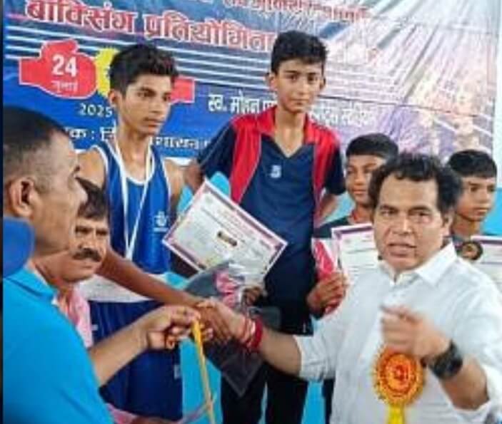 मथुरा। स्वर्गीय मोहन पहलवान स्पोर्ट्स स्टेडियम गणेशरा में चल रही प्रदेश स्तरीय सब जूनियर बॉक्सिंग प्रतियोगिता का समापन रविवार को बॉक्सरों के बीच फाइनल मुकाबले के साथ हुआ। इसमें मेरठ की टीम विजेता तो प्रयागराज की टीम उप विजेता रही। मुख्य अतिथि विधायक श्रीकांत शर्मा ने विजेता खिलाड़ियों को पुरस्कार, सर्टिफिकेट देकर सम्मानित किया। जिला खेल अधिकारी राकेश यादव ने बताया कि 30-33 किलोग्राम भार में लखनऊ के अविरल गुप्ता प्रथम रहे। 33-35 किलोग्राम भार वर्ग में प्रयागराज के अमन प्रथम। 35-37 किलोग्राम भार वर्ग में मेरठ के कृष्ण कुमार प्रथम। 37-40 किलोग्राम भार वर्ग में सहारनपुर के धीरज कुमार प्रथम। 40-43 किलोग्राम भार वर्ग में बनारस के आदित्य राजभर प्रथम। 43-46 किलोग्राम भार वर्ग में मेरठ के अभय मलिक प्रथम रहे। इसी प्रकार 46-49 किलोग्राम भार वर्ग में मेरठ के रूद्र प्रताप सिंह प्रथम। 49 से 52 किलोग्राम भार वर्ग में अयोध्या के देवांश मिश्रा प्रथम। 52-55 किलोग्राम भार में अयोध्या के प्रशांत प्रथम। 55-58 किलोग्राम भार वर्ग में मेरठ के अनुज बाबरा प्रथम। 58-61 किलोग्राम भार वर्ग में झांसी के आशा सिंह प्रथम। 61-64 किलोग्राम भार वर्ग में मेरठ के वर्लित मलिक प्रथम। 64-67 किलोग्राम वर्ग में मेरठ के लक्ष्य पोगाट प्रथम। 67-70 भार में मेरठ के भव्य प्रताप प्रथम रहे। इस मौके पर क्रीड़ा अधिकारी फिरोजाबाद मुकेश कुमार, मुकेश यादव, ओपी कुलश्रेष्ठ, कमल किशोर, अमित कुमार, धीरेंद्र सिंह, देवेंद्र सिंह, दिनेश कुमार, अविनाश, प्रकांक्षा आदि उपस्थित रहे।