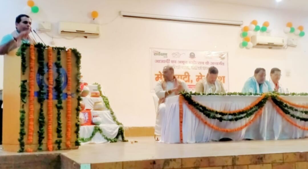 जिसमें मुख्य अतिथि के रूप पधारे मथुरा-वृंदावन विधानसभा विधायक श्रीकांत शर्मा ने कहा कि बलिदानी, वीर वीरांगनाओं को सम्मान देने के लिए मेरी माटी-मेरा देश अभियान की शुरुआत की गई है। इस कार्यक्रम का उद्देश्य है कि गांव के एक सामान्य व्यक्ति को देश की माटी के महत्व को बताते हुए देश की माटी से जोड़ना है। वहीं महापौर विनोद अग्रवाल ने कहा मेरी माटी मेरा देश की अवधारणा से देश की स्वतंत्रता व प्रगति जन-जन के ह्रद्य में स्थापित किया जाएगा। वहीं सभी का आभार व्यक्त करते हुए भाजपा महानगर अध्यक्ष घनश्याम लोधी ने कहा यह कलश दिल्ली पहुंचाया जाना है, जहां पर भारत के कोने२से कलशों में आने वाली मिट्टी से राष्ट्रीय युद्ध स्मारक के पास ‘अमृत वाटिका’ बनाई जाएगी. यह ‘अमृत वाटिका’ ‘एक भारत-श्रेष्ठ भारत’ का भव्य प्रतीक बनेगी। कार्यक्रम का संचालन महामंत्री राजू यादव ने किया।
