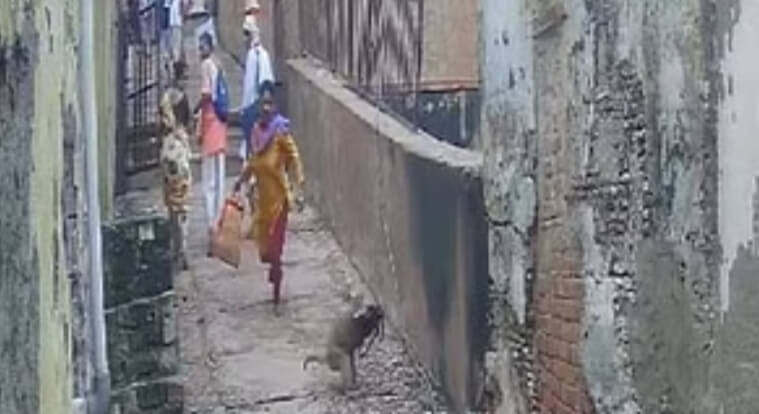 मथुरा। वृंदावन में बंदरों के आतंक की एक बार फिर तस्वीर सामने आई है। यहां दर्शन करने जा रही महिला श्रद्धालु का बंदर ने पर्स छीन लिया। पर्स को बचाने के लिए जब महिला श्रद्धालु दौड़ी तो उसका संतुलन बिगड़ गया और वह करीब 10 फीट नीचे जा गिरी। जिससे महिला के गंभीर चोट आई है। बंदरों के इस हमले का सीसीटीवी वीडियो सामने आया है। पश्चिम बंगाल से श्रद्धालुओं का ग्रुप वृंदावन दर्शन करने आया था। इस ग्रुप में शामिल एक महिला एक हाथ में थैला और दूसरे हाथ में पर्स लिए मदन मोहन मंदिर के दर्शन करने जा रही थी। महिला मदन मोहन मंदिर की सीढ़ियां चढ़कर आगे बढ़ी तभी एक बंदर आया और हाथ से पर्स छीनकर भाग गया। बंदर के पर्स ले जाते ही उसे बचाने के लिए महिला ने दौड़ लगाई। वह कुछ दूर तो उसके पीछे दौड़ी ,लेकिन तभी संतुलन बिगड़ गया और वह सीढ़ियों से लुढ़कती हुई 10 फीट नीचे गिर गयी। इस घटना में महिला के गंभीर चोट आई। महिला के घायल होते देख आसपास के लोग उसे बचाने दौड़ पड़े। मदन मोहन मंदिर के सामने रहने वाले बांके बिहारी मंदिर के गोस्वामी आशीष ने महिला को स्थानीय युवक के साथ डॉक्टर के पास भेजा। जहां उनका उपचार किया गया।