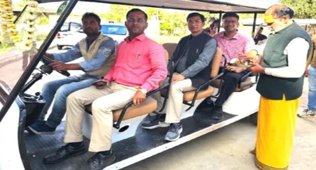 मथुरा। गिर्राज जी के भक्त अब गोवर्धन में सप्तकोसीय परिक्रमा या लुफ्त गोल्फ कार्ट से उठाएंगे। इसके लिए मथुरा वृंदावन विकास प्राधिकरण ने फरीदाबाद की कंपनी के साथ अनुबंध किया है। पिछले दिनों श्रीकृष्ण जन्म स्थान पर दर्शन को आए मुख्यमंत्री योगी आदित्यनाथ ने वृंदावन में 30 गोल्फ कार्ट के संचालन को हरी झंडी दिखाई थी। जन्मस्थान तक उन्होंने गोल्फ कार्ट में बैठकर सफर भी किया था। अब मथुरा वृंदावन विकास प्राधिकरण ने इस व्यवस्था का विस्तार करते हुए गोवर्धन की सप्त कोसीय परिक्रमा में भी संचालन करने का फैसला किया है। निजी कम्पनी के साथ हुए अनुबंध के तहत अब गोवर्धन के परिक्रमा मार्ग में 30 गोल्फ कार्ट का संचालन किया जायेगा। इस व्यवस्था में कंपनी 41 लाख रुपए वार्षिक मथुरा वृंदावन विकास प्राधिकरण को देगी। शनिवार को इस व्यवस्था का शुभारंभ परिक्रमा मार्ग पर दोपहर 12 बजे किया गया । विकास प्राधिकरण के उपाध्यक्ष एस बी सिंह, ओएसडी प्रसून द्विवेदी सहित गोल्फ कार्ट का संचालन कर रही कंपनी के अधिकारियों ने गोल्फ कार्ट में बैठकर परिक्रमा की।