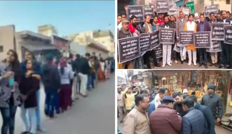 मथुरा के वृंदावन में स्थित विश्व प्रसिद्ध बांके बिहारी मंदिर पर प्रस्तावित कॉरिडोर को लेकर अब विरोध के सुर उठने लगे हैं। व्यापारी,स्थानीय नागरिक और मंदिर के गोस्वामी विरोध के लिए अलग अलग रणनीति बनाने में जुट गए हैं। कुछ लोग जहां हाई कोर्ट और सुप्रीम कोर्ट जा रहे हैं तो वहीं कुछ लोग मौके पर विरोध करने की रणनीति बना रहे हैं। बांके बिहारी मंदिर पर बढ़ने वाली भीड़ को देखते हुए उत्तर प्रदेश सरकार काशी की तरह कॉरिडोर बनाना चाहती है। इसके लिए कवायद भी शुरू हो गई है। 5 एकड़ में बनने वाले कॉरिडोर में बांके बिहारी जी के लिए प्रवेश के लिए 3 रास्तों का चयन प्रस्तावित है। जिसमें एक मार्ग विद्यापीठ चौराहा से,दूसरा वीआईपी रोड से और तीसरा जुगल घाट हो कर। पिछले दिनों डीएम ने नगर आयुक्त की अध्यक्षता में 8 सदस्यीय टीम बनाई। इस टीम ने बांके बिहारी मंदिर के आसपास स्थित भवनों का सर्वे किया। टीम ने यहां 4 दिनों में 341 भवनों का सर्वे किया। सर्वे के बाद टीम मूल्यांकन कर रही है। ठाकुर श्री बांके बिहारी मंदिर के प्रस्तावित कॉरिडोर के खिलाफ विरोध के स्वर मुखर होने लगे हैं। बांके बिहारी मंदिर के आसपास करीब 300 दुकान हैं। इन दुकानों के कॉरिडोर में जाने की आहट से व्यापारियों की रातों की नींद उड़ी हुई है। इसी को लेकर व्यापारियों ने पहले एक धर्मशाला में बैठक की और इसके बाद बांके बिहारी मंदिर पहुंच कर मुख्य द्वार पर प्रदर्शन किया। कॉरिडोर के नाम पर प्राचीन विरासत को नष्ट करने के षड्यंत्र से आक्रोशित व्यापारी,क्षेत्र वासी सड़कों पर उतर आए। प्रशासन के खिलाफ नारेबाजी करते हुए पैदल मार्च निकाला। आक्रोशित लोगों ने विद्यापीठ चौराहा से लेकर बांके बिहारी मंदिर तक पैदल मार्च किया। बांके बिहारी मंदिर पहुंच कर लोगों ने जमकर नारेबाजी की और प्रस्तावित कॉरिडोर का विरोध किया। प्रस्तावित कॉरिडोर की जद में आने वाले लोगों के मकान, दुकान के तोड़ने और प्राचीन कुंज गलियों को तहस नहस करने की योजना वृंदावन वासियों को रास नहीं आ रही है। लगातार कई दिनों से चल रही सुगबुगाहट के बाद आखिरकार क्षेत्र वासी सड़कों पर उतर आए। सार्वजनिक बैठक के बाद जनांदोलन की रूपरेखा तैयार करने के बाद विद्यापीठ चौराहा से मंदिर के मुख्य द्वार तक पैदल मार्च निकाला गया। जिसमें हाथ में काले बैनर पोस्टर लिए सैकड़ों लोग प्रशासन के खिलाफ नारेबाजी करते दिखाई दिए। प्रदर्शन कर रहे व्यापारी नेता अमित गौतम ने बताया कि आंदोलन को वृहद स्तर पर चलाने के लिए रणनीति तैयार कर ली गई है। कांग्रेस नेता कुंवर सिंह निषाद ने बताया कि प्रशासन को किसी भी क्षेत्र का विकास करने से पहले स्थानीय नागरिकों से चर्चा करनी चाहिए। वृंदावन कुंज गलियों का शहर है ये हेरिटेज शहर है। स