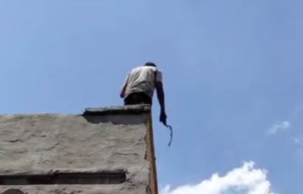 मथुरा। गोवर्धन थाना क्षेत्र के गांव अडींग के मुख्य बाजार में उस समय अफरा-तफरी मच गई, जब एक व्यक्ति हाथ में दरांती लेकर सुरेश मास्टर के घर की छत पर चढ़ गया। प्रत्यक्षदर्शियों ने बताया कि व्यक्ति नीचे कूदने की धमकी देने लगा। मौके पर पहुंची पुलिस ने कड़ी मशक्कत के बाद व्यक्ति को नीचे उतारा। जांच में सामने आया है कि व्यक्ति मानसिक रोगी है। घटना सुबह करीब 11 बजे की है। मुख्य बाजार में सुरेश मास्टर के घर की छत पर एक व्यक्ति चढ़ गया। चीखने चिल्लाने के साथ नीचे कूदने की धमकी देने लगा। जब लोगों का ध्यान उसकी ओर गया तो देखा कि उसके हाथ में दरांती थी। पहले लोगों ने उसे काफी समझाया लेकिन वह नहीं माना। इसके बाद लोगों ने पुलिस को मामले की जानकारी दी। सूचना पर पहुंची पुलिस ने घंटों की मशक्कत के बाद व्यक्ति को काबू में किया और छत से नीचे उतारा। इस दौराम पूरे बाजार में अफरा तफरी का माहौल रहा। घटना का वीडियो भी सोशल मीडिया पर तेजी से वायरल हो रहा है। थाना पुलिस ने बताया कि व्यक्ति मानसिक रोगी है।