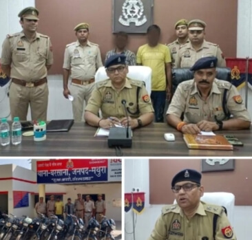 मथुरा । थाना बरसाना पुलिस ने दो शातिर वाहन चोरों को गिरफ्तार करने सफलता हांसिल कर नौ चोरी की मोटरसाइकिल बरामद की हैं, पुलिस द्वारा गिरफ्तार किये गये दोनों अभियुक्त अन्तर्राज्यीय वाहन चोर गिरोह के सदस्य हैं, दोनों वाहन चोरों को पुलिस द्वारा बरसाना कस्बे से गिरफ्तार किया गया है थाना बरसाना की पुलिस चौकी हाथिया के प्रभारी अरविन्द पुनिया ने बताया कि अभियुक्त सद्दा उर्फ सद्दाम पुत्र दीनू उर्फ दीन मौहम्मद तथा आशिक उर्फ आशिफ पुत्र जमानू उर्फ जमालूद्दान को गिरफ्तार किया गया है, दोनों ही शातिर वाहन चोर ग्राम हाथिया थाना बरसाना के रहने वाले हैं, इनके कब्जे से एक तमंचा भी बरामद किया गया है, दोनों अभियुक्तों के ऊपर मथुरा और दिल्ली में विभिन्न धाराओं में दर्जनों मुकदमे दर्ज है, पुलिस के मुताबिक सद्दाम के विरूद्ध नौ तथा आशिफ पर 14 आपराधिक मामले दर्ज है, अन्य थानों से भी इनके आपराधिक रिकार्ड की जानकारी की जा रही है, पुलिस ने दोनों को चैकिंग के दौरान गोवर्धन नाला बैरियर के पास कस्बा बरसाना से गिरफ्तार किया है, दोनों ने मोटरसाईकिलों के दिल्ली, राजस्थान, हरियाणा व उत्तर प्रदेश की अलग-अलग जगहों से चोरी करना स्वीकार किया है ।