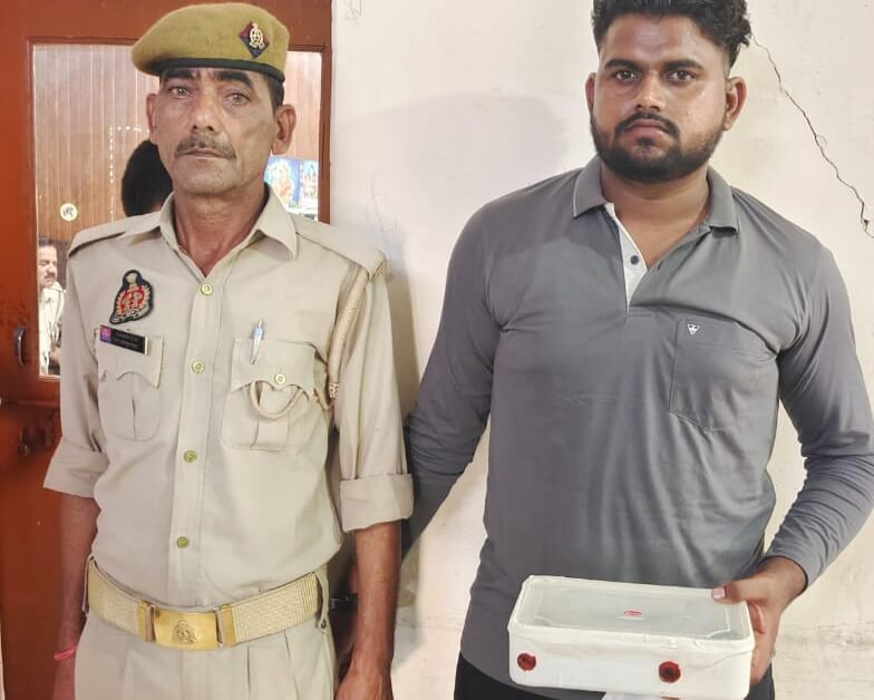 मथुरा। थाना गोवर्धन पुलिस द्वारा एक अभियुक्त को एक अवैध तमंचा .315 बोर व एक जिन्दा कारतूस .315 बोर सहित गिरफ्तार किया। वरिष्ठ पुलिस अधीक्षक,मथुरा महोदय* के आदेशानुसार अपराध की रोकथाम व अपराधियों की गिरफ्तारी हेतु चलाये जा रहे अभियान के क्रम में श्रीमान पुलिस अधीक्षक,ग्रामीण महोदय के निर्देशन में श्रीमान क्षेत्राधिकारी गोवर्धऩ महोदय के निकट पर्यवेक्षण में प्रभारी निरीक्षक गोवर्धन के कुशल नेतृत्व में पुलिस टीम द्वारा मुखबिर खास की सूचना पर दिनांक 10.09.2024 को अभियुक्त राहुल पुत्र बिज्जी निवासी नीमगांव थाना गोवर्धन जनपद मथुरा उम्र करीब 22 वर्ष को कुंजीलाल तिराहे से करीब 150 कदम छटीकरा की ओर राधारानी बिल्डिंग मेटेरियल की बन्द पडी दुकान के पास से एक अवैध तमंचा .315 बोर व एक जिन्दा कारतूस .315 बोर सहित गिरफ्तार किया गया । अभियुक्त राहुल उपरोक्त से बरामदगी के आधार पर थाना हाजा पर मु0अ0सं0 461/2024 धारा 3/25 आर्म्स एक्ट का अभियोग पंजीकृत होकर आवश्यक विधिक कार्यवाही की जा रही है ।
