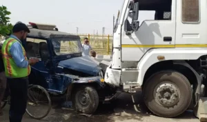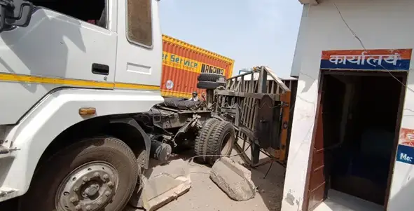 मथुरा। फरह थाना की चौकी में आगरा मथुरा हाइवे स्थित पौरी गांव पर अनियंत्रित ट्रक एक विपरीत दिशा से आते टैक्टर को बचाने की कोशिश में थाना फरह की रैपुराजाट पुलिस चौकी जा घुसा। किसी पुलिस कर्मी के हताहत होने की खबर नहीं है। रविवार सुबह करीब 9 बजे एक ट्रैक्टर चालक गलत दिशा सें जा रहा था सामने से आते ट्रक से उसे देखकर अचानक ब्रेक लगाये तो ट्रक अनियंत्रित हो गया और उस पर रखा कंटेनर ट्रक से उतरकर पुलिस चौकी में जा घुसा। कंटेनर सडक पर रखे सीमेंट के बेरिकेटिंग को तोड़ते हुए पुलिस चौकी में जा घुसा। हादसे के कारण पुलिस चौकी की पूरी बिल्डिंग में दरार पड़ गई है वहीं कंटेनर पास ही खडी सरकारी जीप से भी टकरा गया। जिसके कारण सरकारी जीप भी क्षतिग्रस्त हो गई। गनीमत रही कि घटना के समय कोई व्यक्ति या पुलिसकर्मी उस जगह मौजूद नहीं था। वरना कोई भी जान की हानि भी हो सकती थी।