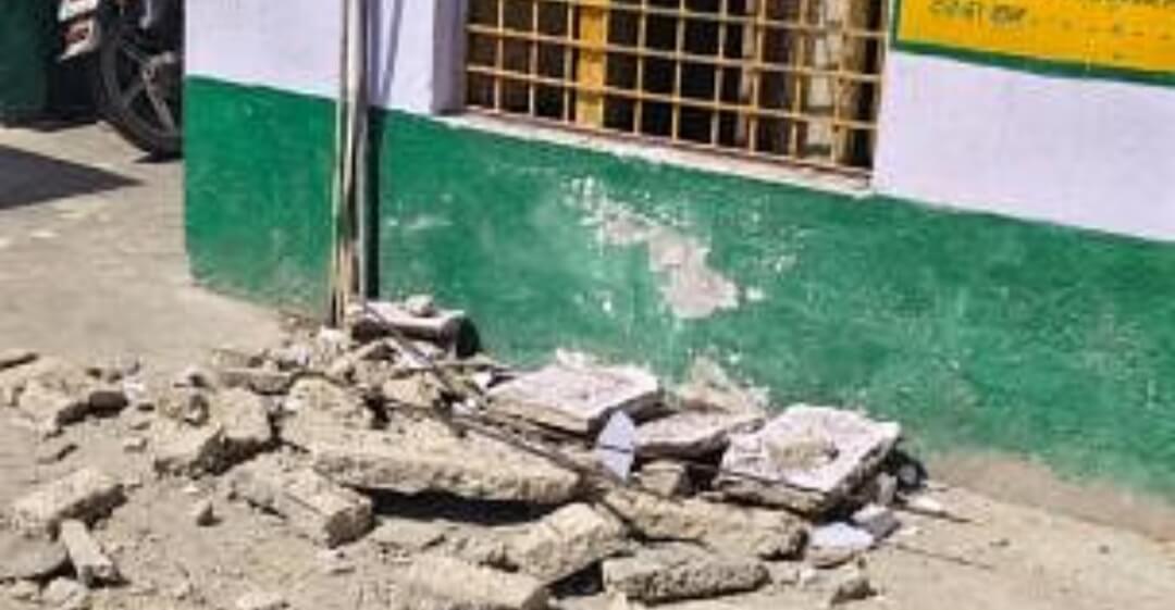 फरह के कस्वा ओल में प्राइमरी स्कूल का गिरा छज्जा