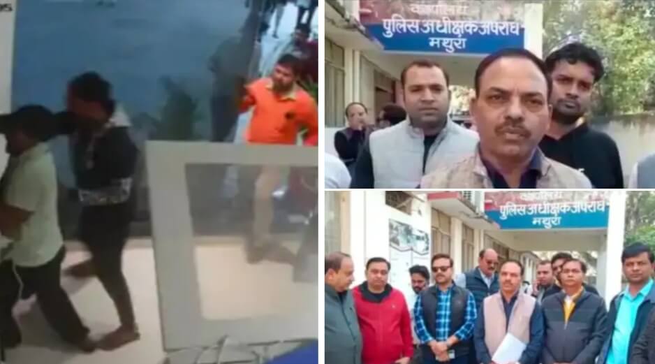 मथुरा के बरसाना थाना इलाके के एक पेट्रोल पम्प पर कुछ दबंगों ने सेल्समैन के साथ जमकर मारपीट की। पेट्रोल पंप मालिक ने आरोप लगाया है की मारपीट के दौरान लूट भी की गई। मारपीट की घटना पंप पर लगे सीसीटीवी में कैद हो गई। जिसमें पेट्रोल पंप मालिक ने आरोपी युवकों के खिलाफ थाना पुलिस में तहरीर दे कार्रवाई की मांग की है। थाना बरसाना इलाके के बजाज पेट्रोल पंप पर मारपीट का एक वीडियो वायरल हो रहा है। मिली जानकारी के अनुसार दो युवक पेट्रोल पंप पर पेट्रोल भरवाने के लिए आए थे। तभी सेल्समैन ने सिगरेट पीने से मना किया तो 2 युवकों ने सेल्समैन के साथ मारपीट शुरू कर दी। मारपीट की घटना पेट्रोल पंप पर लगे सीसीटीवी में कैद हो गई। जिसके बाद पेट्रोल पंप कर्मचारियों ने पुलिस को सूचना दी। घटना की सूचना पाकर पुलिस मौके पर पहुंच गयी। बताया जा रहा है कि जब तक पुलिस मौके पर पहुंची थी तब तक आरोपी फरार हो चुके थे। वही इस मामले में जब कोई कार्यवाही पुलिस द्वारा नही की गई तो पेट्रोल पंप एसोसिएशन के लोग गुरुवार को एसपी सिटी ऑफिस पहुंचे। जहां उन्होंने एसपी सिटी को पूरे मामले से अवगत कराया है। मथुरा एसपी सिटी मार्तण्ड प्रकाश ने पेट्रोल पंप मालिक को आरोपियों के खिलाफ कार्रवाई का आश्वाशन दिया है। इस दौरान पेट्रोल पंप मालिक अजय खंडेलवाल ने मामले की जानकारी देते हुए बताया कि दोनों युवक दबंग हैं और आए दिन लोगों से मारपीट करते रहते हैं। ऐसे ही बुधवार को शाम को सिगरेट पीने पर मना करने पर युवकों ने सेल्समैन से मारपीट और रूपए लूटने का भी आरोप लगाया है।