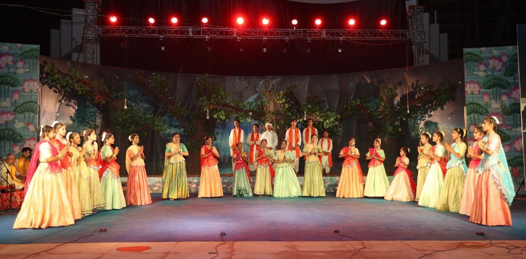 भव्य मंच को ब्रज वन के रूप में सजाया गया था। बच्चों ने भातखण्डे संस्कृति विश्वविद्यालय से पधारीं डा मीरा दीक्षित के निर्देशन में कथक नृत्य किया।