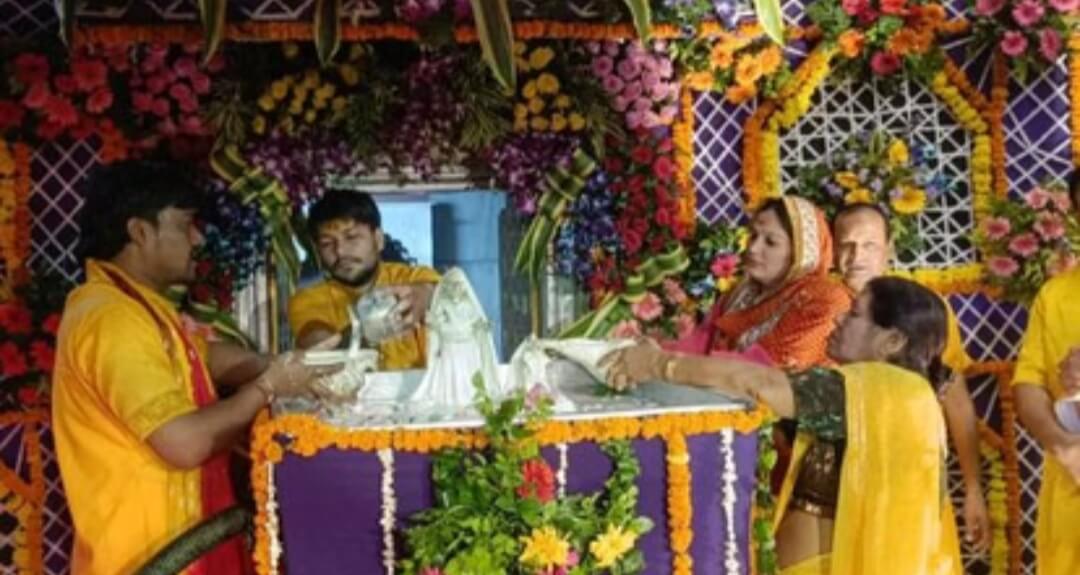 मथुरा। महावन के राधा रानी मंदिर रावल में सुबह द्वापर युग जैसा माहौल दिखा। भगवान श्रीकृष्ण की प्रिय राधारानी की प्राकट्य स्थली रावल में प्राकट्य उत्सव बहुत ही धूमधाम से मनाया गया। सुबह चार बजे राधा रानी का प्राकट्य होते ही मंदिर घंटे और घड़ियाल व शंख ध्वनि से गूंज उठा। चारों तरफ राधारानी के जयकारों से मंदिर गूंज उठा। भाद्रपद की अष्टमी तिथि को वृषभानु व कीर्ति की लाडली बेटी राधारानी का प्राकट्य हुआ। मंदिर के सेवायत पुजारी राहुल कल्ला द्वारा सुबह 4 बजकर 30 मिनट पर मंगला आरती की गई। वहीं 5 बजकर 30 मिनट पर 101 किलो दूध मिश्रित घी, शहद ,बूरा, यमुना जल, रस, गंगाजल व पंचामृत से राधारानी के विग्रह का अभिषेक किया गया। तत्पश्चात् श्री राधारानी का पीतांबरी वस्त्र धारण करा शृंगार किया गया। देश के विभिन्न प्रांतों व रावल समेत आसपास के गांवों की महिलाएं व पुरुष बधाई गायन करते हुए आनंद विभोर होकर नृत्य गायन करते दिखाई दिए। महोत्सव के साथ ही हल्दी चंदन का मिश्रण उड़ेला गया। शाम से ही मंदिर पर श्रद्धालुओं का आना शुरू हो गया। कार्यक्रम में मंदिर के सेवायत पुजारी राहुल कल्ला, बलवीर सारस्वत, संजीव सारस्वत,राधा शरण, प्रभू शरण, नरेश सारस्वत, संजय सारस्वत, अनूप सारस्वत, योगेश चौधरी आदि श्रृद्धालु मौजूद रहे।