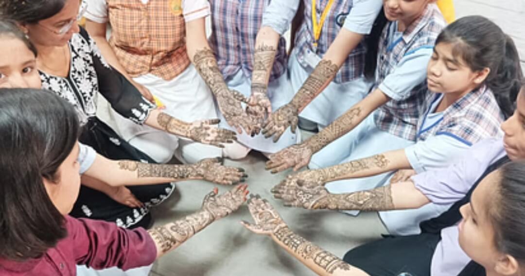 नृत्य कर राधाकृष्ण की मोहक मेहंदी रचाई