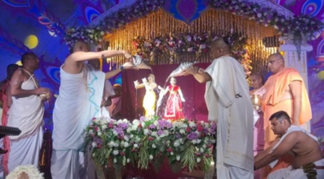 मथुरा। वृंदावन के चंद्रोदय मंदिर में राधाष्टमी महोत्सव श्रद्धा और उल्लास के साथ मनाया गया। मंदिर को सुंदर पुष्पों से सजाया गया और विशेष अनुष्ठानों जैसे धूप आरती, महाभिषेक, पुष्प बंगला, छप्पन भोग, झूलन उत्सव व पालकी यात्रा का आयोजन हुआ। मंदिर अध्यक्ष चंचलापति दास ने कहा कि राधारानी भव व्याधि विनाशिनी हैं, जो अपने चरणों में पूर्ण समर्पण करने वाले भक्तों को श्रीकृष्ण भक्ति प्रदान करती हैं। उन्होंने राधारानी को भक्ति मार्ग की माता बताते हुए सेवा में निरंतर लगे रहने का आह्वान किया। इस अवसर पर देशभर से आए श्रद्धालुओं ने हरिनाम संकीर्तन में भाग लेकर आध्यात्मिक आनंद का अनुभव किया।