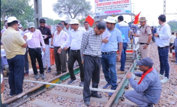 मथुरा। उत्तर मध्य रेलवे ,आगरा मण्डल द्वारा यात्री सुविधाओं के उन्नयन एवं परिचालन सुगमता हेतु मूलभूत ढ़ांचे में विस्तार के क्रम के अंतर्गत, आज बाद – मथुरा जं. स्टेशनों के मध्य लगभग 5.60 किलोमीटर नवनिर्मित तीसरी लाइन का संरक्षा परीक्षण पूर्वोत्तर परिक्षेत्र के रेल संरक्षा आयुक्त श्री प्रणजीव सक्सेना द्वारा किया गया | निरीक्षण के दौरान मंडल रेल प्रबंधक श्री तेज प्रकाश अग्रवाल समेत मंडल व निर्माण संगठन के अधिकारी उपस्थिति रहे | रेल संरक्षा आयुक्त श्री प्रणजीव सक्सेना द्वारा सर्वप्रथम मंडल एवं निर्माण संगठन के अधिकारियों के साथ मोटर ट्राली के माध्यम से बाद – मथुरा जं. स्टेशनों के मध्य नव निर्मित अप तीसरी लाइन 5.60 किलोमीटर का संरक्षा से सम्बंधित निरीक्षण किया। निरीक्षण के दौरान उक्त रेल खंड के अंतर्गत आने वाले ट्रैक्शन, सिग्नल, गेट, ब्रिज, ट्रैक, ट्रैक-पॉइंट्स आदि सभी इंस्टालेशन तथा उनकी कार्य क्षमता का गहनता से निरीक्षण किया गया I इस दौरान खंड में पड़ने वाले आरयूबी नंबर 526, कर्व संख्या 89 व 04 माइनर ब्रिज का रेल संरक्षा आयुक्त द्वारा गहन निरीक्षण किया गया। निरीक्षण के उपरांत नवनिर्मित लगभग 5.60 कि.मी. ब्राड गेज लाइन पर 120 किमी प्रति घंटे की रफ्तार से ट्रेन का स्पीड ट्रायल भी किया गया | ज्ञात हो कि इस रूट की रेल संरक्षा आयुक्त को अनुमति के पश्चात रेल प्रशासन द्वारा ट्रेन संचालन किया जाएगा । जिससे इस क्षेत्र में यातायात ज्यादा तेज और सुगम होगा |निरीक्षण के दौरान रेल संरक्षा आयुक्त के साथ मुख्यालय से मुख्य प्रशासनिक अधिकारी (निर्माण) श्री विपिन कुमार, मंडल रेल प्रबंधक आगरा तेज प्रकाश अग्रवाल सहित मंडल के अधिकारी भी उपस्थित रहे|