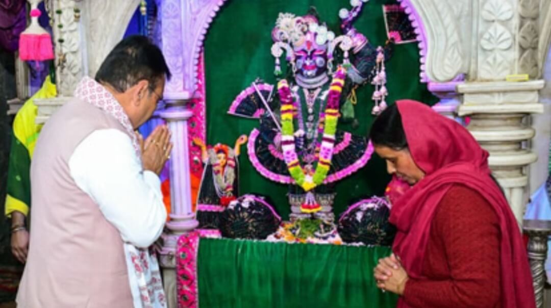 मथुरा। गोवर्धन के राधाकुण्ड में तलहटी पहुंचे राजस्थान के मुख्यमंत्री भजन लाल शर्मा ने गिरिराज जी की पूजा कर मनौती मांगी। उन्होंने पूंछरी के लौठा में श्रीनाथ जी के दर्शन किए। गिरिराज जी की परिक्रमा के दौरान उन्होंने जतीपुरा के मुखारविंद मंदिर में पूजा की। उनकी पत्नी गीता शर्मा और पुत्र आशीष शर्मा ने श्रद्धा भाव से दंडवती परिक्रमा कर आस्था का परिचय दिया, जिसे देख अन्य श्रद्धालु भी भावविभोर हो उठे। मुख्यमंत्री का पूरा परिवार जतीपुरा स्थित मुखारविंद मंदिर पहुंचा, जहां गिरिराज महाराज की विधिविधान से पूजा-अर्चना की गई। सेवायतों ने मंत्रोच्चार के साथ अनुष्ठान संपन्न कराया। मुख्यमंत्री ने प्रदेश की सुख-समृद्धि, शांति और जनकल्याण की कामना की। भानू पाराशर ने मुख्यमंत्री को गिरिराज महाराज का चित्रपट भेंट किया। वहीं गोवर्धन नगर पंचायत चेयरमैन प्रभा शर्मा और उनके पति मनीष लंबरदार ने सीएम परिवार का स्वागत कर स्मृति चिह्न भेंट किया। मंदिर रिसीवर कपिल चतुर्वेदी ने मानसी गंगा और मंदिर के पौराणिक महत्व बताकर प्रसादी अंगवस्त्र भेंट किया। साथ में मंदिर सेवाधिकारी देवेंद्र शर्मा गोपाल जी, मंदिर प्रबंधक चंद्र विनोद कौशिक, गजेंद्र सिह, सुनील आदि उपस्थित रहे।