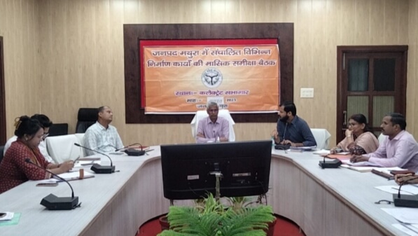 मथुरा 19 सितंबर। उत्तर प्रदेश सरकार द्वारा माननीय मुख्यमंत्री जी के नेतृत्व में सरकार की जनकल्याणकारी योजनाओं को प्रत्येक पात्र व्यक्ति तक पहुंचाने के लिए सरकार पूर्णतय कटिबद्ध है। जिलाधिकारी शैलेंद्र कुमार सिंह ने सरकार की मंशा के अनुरूप कलेक्ट्रेट सभागार में समस्त विभागीय अधिकारियों के साथ सीएम डैशबोर्ड तथा जनपद में संचालित विभिन्न निर्माण कार्यों की समीक्षा बैठक कर संबंधित अधिकारी को आवश्यक दिशा निर्देश दिए। योजनाओं का क्रियान्वयन अच्छे तरीके से होना चाहिए, इसमें कोई भी लापरवाही बर्दाश्त नहीं होगी। समस्त अधिकारियों को यह भी हिदायत दी कि अपने अंदर इंप्रूवमेंट कर लें, जो जनता के हित में कार्य करने के लिए अधिकारियों को पत्र आते हैं, उसका समय अंतर्गत निस्तारण करें।