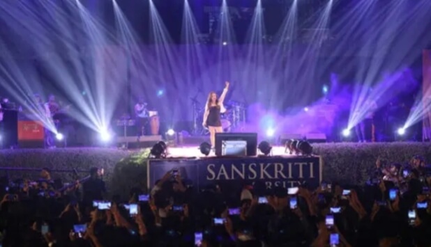 मथुरा। संस्कृति स्पार्क 24 अपने चरम पर पहुंचकर बालीवुड फिल्मों की लोकप्रिय ख्यातिप्राप्त गायिका मोनाली ठाकुर की गीतों भरी शाम और दिल्ली के डीजे के तड़के के साथ संपन्न हुआ। इस संगीतमय कार्यक्रम में विवि के विद्यार्थियों ने कलाकारों के साथ-साथ जबर्दस्त नृत्य किया और देर रात तक सुरों के सुरूर में सराबोर रहे। इस संगीत भरी शाम की शुरुआत संस्कृति विवि की परंपराओं के अनुसार मां सरस्वती की प्रतिमा के समक्ष दीप प्रज्ज्वलन से हुई। संस्कृति विवि के प्रति कुलाधिपति राजेश गुप्ता ने दीप प्रज्ज्वलन के साथ विद्यार्थियों से जोश-जुनून के साथ अनुशासन भी बनाए रखने की अपील की। इसी बीच तेज संगीत पर मंच के पार्श्व से दमदार आवाज के साथ मोनाली ठाकुर ने मंच पर प्रवेश किया। युवा विद्यार्थियों के बीच अपने को पाकर ऊर्जा से लबरेज इस बालीवुड गायिका का उत्साह दूना हो गया। उन्होंने ‘हलो संस्कृति’ का जोरदार उद्बोधन कर छात्र-छात्राओं की तेज हूंटिंग और किलकारियों मजा लिया। लगभग दो घंटे मंच पर रहने के दौरान उन्होंने न केवल अपने बल्कि दूसरों के गाए लोकप्रिय गीतों को पूरे मन से और पूरे जोश के साथ गाया। रेस फिल्म का उनका स्वयं का गाना जिसने लोकप्रियता के सभी रिकार्ड तोड़े हैं, जरा जरा टच मी, फिल्म बिल्लू का, खुदाया खैल, दम लगा के हेइसा का मोह मोह के धागे, गोलमाल रिटर्न्स का म्याऊ, दूल्हा मिल गया का दिलरुबाओं के जलवे, एक पहेली लीला का ढोल बाजे, जाने मन का कुबूल कर ले गाने गाकर मोनाली ठाकुर ने छात्र-छात्राओं को अपनी दमदार आवाज से मदहोश कर दिया। संस्कृति विवि का विशाल मैदान मोनाली ठाकुर के इन गीतों पर झूम रहा था। गायिकी के साथ-साथ उनके द्वारा किए जा रहे हल्के-फुल्के डांस ने छात्र-छात्राओं के जोश में मस्ती का तड़का लगा दिया। कमाल की ऊर्जा के साथ मोनाली ने छात्र-छात्राओं की फरमाइशों को पूरा किया और लगातार लगभग दो घंटे तक गाती रहीं। बताते चलें कि कलकत्ता में जन्मी मोनाली ठाकुर भारतीय पार्श्व गायिका हैं, वे फिल्मों में काम भी कर चुकी हैं। वे एक संगीतमय परिवार से हैं और उनकी गायिकी देख ये सिद्ध भी हो रहा था। विशेष रूप से हिंदी, बंगाली गीतों को गाने में लोकप्रियता हासिल है। संस्कृति विश्वविद्यालय की ओर से कुलाधिपति डा. सचिन गुप्ता, सीईओ मीनाक्षी शर्मा द्वारा बालीवुड की इस प्रसिद्ध सिंगर मोनाली ठाकुर को पटुका ओढ़ाकर और स्मृति चिह्न देकर सम्मानित भी किया गया। मोनाली ठाकुर के बाद मंच पर दिल्ली के डीजे विनोद ने लोकप्रिय जोशीले गीतों को बजाना शुरू कर दिया जिसपर छात्र-छात्राएं देर तक नाचे और देर राद हटाए जाने पर ही हटे। अंत में विवि के कुलपति प्रो.एनबी चेट्टी ने सभी का आभार व्यक्त करते हुए धन्यवाद ज्ञापित किया।