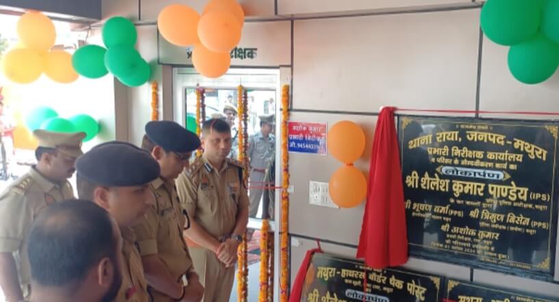 मथुरा। राया आज दिनांक 01.08.2024 को श्रीमान वरिष्ठ पुलिस अधीक्षक महोदय जनपद मथुरा के कर कमलो द्वारा जन सहयोग से थाना राया के सौन्दर्यीकरण/जीर्णोद्धार का लोकार्पण किया गया एवं उद्घाटन के पश्चात ग्राम प्रहरी/चौकीदारों को सप्रेम शॉल भेंट की गयी । इस अवसर पर श्रीमान पुलिस अधीक्षक नगर,देहात,यातायात एवं सुरक्षा व क्षेत्राधिकारी महावन, रिफाइनरी एवं थाना राया के समस्त अधिकारी/कर्मचारीगण उपस्थित रहें ।