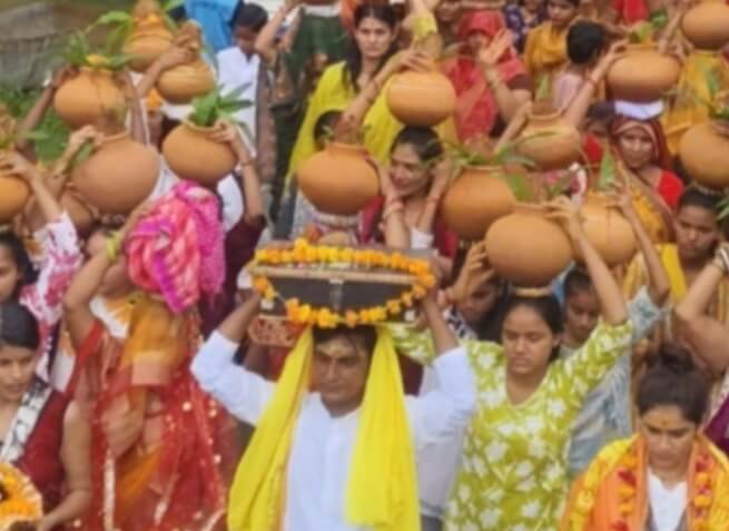 मथुरा। कस्बा नौहझील स्थित कृष्णापुरी कथा पंडाल में रविवार को सात दिवसीय श्रीमद् भागवत कथा का शुभारंभ हुआ। एवं भव्य कलश यात्रा निकाली गई। कलश यात्रा कथा पंडाल से शुरू होकर पथवारी मंदिर रेतिया बाजार चामड चौराहा नंबरदार मोहल्ला द्रोपती चौक होती हुई कथा स्थल पर समाप्त हुई। कलश यात्रा का शुभारंभ कथा व्यास श्री पूजा ब्रज किशोरी जी एवं परीक्षित श्री सुभाष गोस्वामी ने श्रीमद् भागवत की आरती उतार पूजा अर्चना कर किया। सात दिवसीय कार्यक्रम में दोपहर 1 बजे से शाम 5 बजे तक कथा का रसपान कराया जाएगा एवं रोज रात्रि 8 बजे से रात्रि 10 बजे तक भगवान कृष्ण भजनो का आयोजन कथा पाडाल प्रांगड़ में किया जाएगा। पहले दिन की कथा में कथा व्यास ने श्रवण कराया कि भागवत की कथा भगवान की कृपा से प्राप्त हो पाती है यह कथा मृत्यु के भय को दूर करके भगवान की ओर आगे बढ़ाती है भक्ति के साथ हमारे ज्ञान वैराग्य को बल देती है। श्रीमद् भागवत कथा में भक्तों की ऐसी दिव्य कथाएं हैं। जिनको सुनकर हृदय में भक्ति का भाव उदय होता है और साथ ही मनुष्य के जीवन में सुधार होता है। ऐसा श्री पूजा ब्रज किशोरी कथा व्यास के मुखारविंद से ज्ञान प्राप्त हुआ।