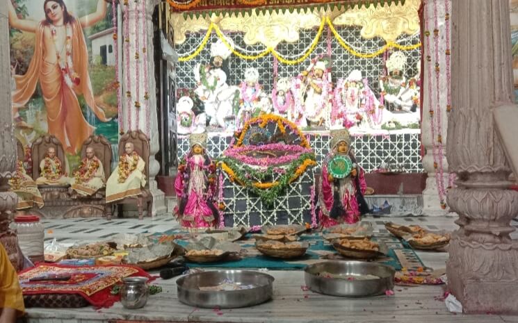 मन्दिर के वरिष्ठ सेवायत आचार्य तरुण गोस्वामी महाराज ने कहा कि महोत्सव के अंर्तगत मन्दिर के 14वें एवं अन्तिम पीठाधीश्वर आचार्य निर्मलचन्द्र गोस्वामी महाराज (पूज्य आचार्यश्री) की समाधि पर विधिवत रूप से पूजन व आरती सहित पुष्पांजलि की गई। वरिष्ठ सेवायत आचार्य करुण गोस्वामी महाराज ने कहा कि आज ठाकुर श्रीराधा दामोदर लाल देव जू महाराज के भव्य फूलों के बंगला में माधुर्य मंगलमय दर्शन हुए।साथ ही उन्हें छप्पन-भोग निवेदित किए गए। सेवायत आचार्य कृष्ण बलराम गोस्वामी महाराज ने कहा कि श्रीगुरू पूर्णिमा महोत्सव के अंर्तगत मन्दिर की प्रधान सेवायत आचार्या श्रीमती तरुलता गोस्वामी (मां गुसाई) के द्वारा आचार्य निर्मलचन्द्र गोस्वामी महाराज (पूज्य आचार्यश्री) की प्रतिमा का पूजन-अर्चन किया गया।साथ ही उन्हें पुष्पांजलि अर्पित की गई।तत्पश्चात् देश-विदेश से आए समस्त भक्तों-श्रद्धालुओं ने श्रीहरिनाम संकीर्तन करते हुए मन्दिर की 4 परिक्रमा की।मध्याह्न में संत, वैष्णव, बृजवासी सेवा एवं वृहद भंडारा का आयोजित किया गया।