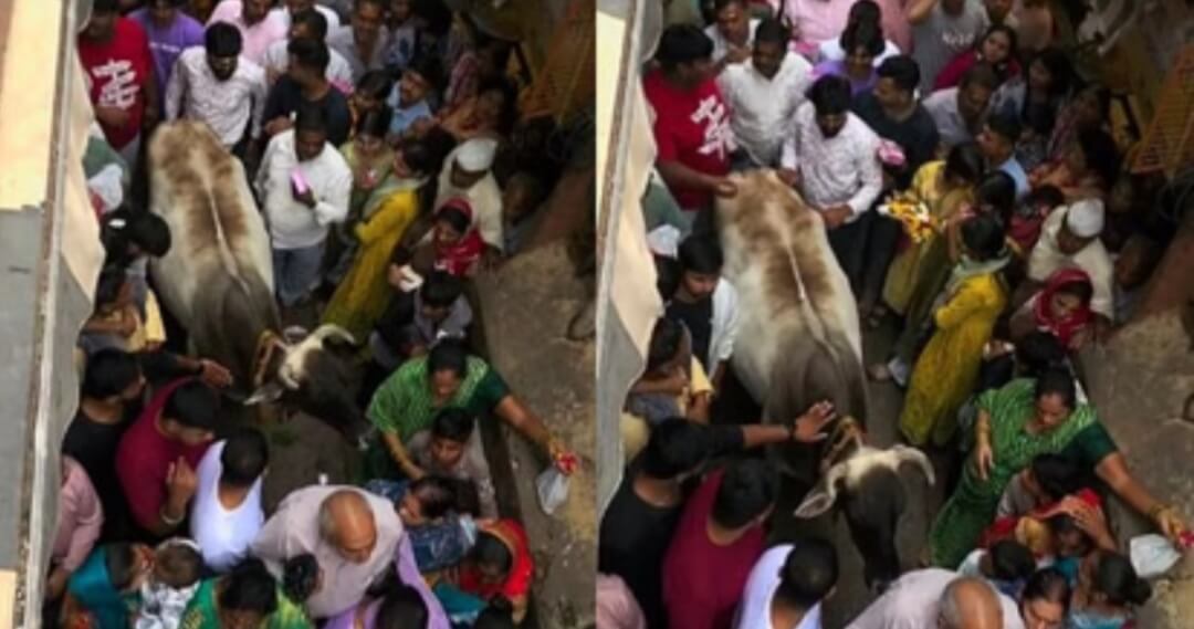 मथुरा। वृंदावन के श्रीबांकेबिहारी मंदिर में दर्शन के लिए श्रद्धालुओं का हुजूम उमड़ पड़ा। श्रद्धालुओं की भीड़ के बीच एक गाय भी घुस गई। भीड़ का दबाव इतना था कि गाय को हिलने तक की जगह नहीं मिल पा रही थी। मथुरा के वृंदावन में श्री बांकेबिहारी मंदिर में भीड़ कम होने का नाम नहीं ले रही है। मंगलवार को भीड़ का ऐसा आलम रहा कि गलियां तक जाम हो गईं। भीड़ के बीच एक गाय भी आ गई। इससे कुछ देर अफरा तफरी का माहौल बन गया। हालांकि गाय शांत खड़ी रही, अगर भागती तो शायद भगदड़ भी मच जाती। इसका वीडियो सोशल मीडिया पर वायरल हो रहा है और कई सेवायतों ने सवाल भी उठाए हैं। श्रद्धालुओं की भीड़ में एक गाय घुस आई। कुछ लोग गाय को देखकर भागने लगे तो लोगों ने उन्हें शांति से खड़ा कर दिया। गाय एक ही जगह पर खड़ी रही, जिससे परेशानी नहीं हुई। अगर भागती तो श्रद्धालुओं में भगदड़ मच जाती है। भीड़ कम होने के बाद गाय को गली से हटाया गया। श्री बांकेबिहारी मंदिर पुलिस चौकी के सामने से लेकर मंदिर के गेट तक यह स्थिति थी कि काेई एक ओर से दूसरी ओर भी नहीं जा पा रहा था। भीड़ में बच्चे, महिलाएं और बुजुर्ग परेशान होते नजर आए।