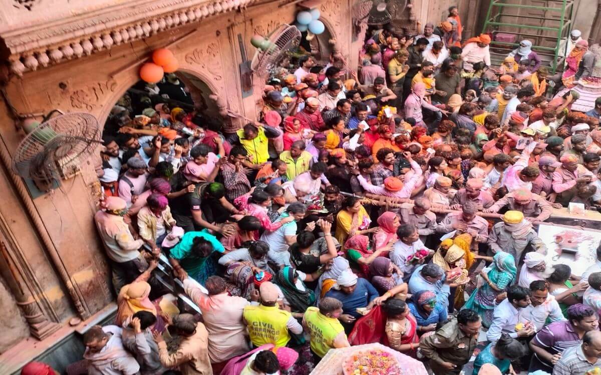 राधा वल्लभ मंदिर, राधा रमण, राधा दामोदर, श्याम सुंदर आदि मंदिरों में श्रद्धालु अबीर-गुलाल की बौछार करते हुए दिखाई दिए। सुनरख मार्ग स्थित भक्ति मंदिर में आयोजित श्रीमद्भागवत कथा में अनन्तानंत द्वाराचार्य स्वामी रामकमल दास वेदांती महाराज ने भगवान बालकृष्ण की लीलाओं का वर्णन किया। उन्होंने कहा कि गिरिराज सांचे देव हैं, जो जिस मनोरथ और भाव से उनका दर्शन-पूजन करता है, उसे वैसा ही फल देेते हैं। इसके बाद ठाकुर जानकीवल्लभ महाराज के सानिध्य में प्रिया-प्रियतम के दिव्य स्वरूपों संग होली खेली गई । हर कोई प्रिया-प्रियतम के प्रसादी फूलों को एक-दूसरे पर फेंककर होली खेलने लगा।