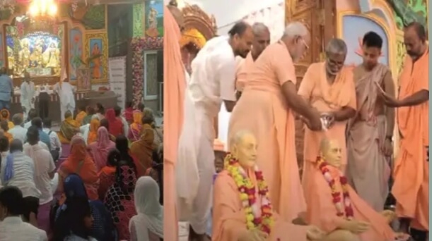 मथुरा। श्री केशवजी गौड़ीय मठ में चल रहे जन्माष्टमी एवं नवीन मंदिर उद्घाटन महोत्सव के अंतर्गत 26 अगस्त को पूर्ण वैष्णव विधि विधान के साथ ठाकुरजी की विग्रह नवीन मंदिर में स्थापित होने के साथ ही गुरुवर्गोंं की विग्रह प्रतिष्ठा की गई। श्रीकेशवजी गौड़ीय मठ के पूर्व आचार्य नित्यलीला प्रविष्ट श्रीमद् भक्तिवेदान्त नारायण गोस्वामी महाराज के समय में ही मंदिर के प्राचीन भवन की जर्जर स्थिति को देखते हुए नवीन मंदिर निर्माण की परिकल्पना हो चुकी थी परन्तु इससे पूर्व ही श्रील महाराजश्री ठाकुर श्रीराधाविनोद बिहारी की नित्यलीला में प्रविष्ट हो गये। अपने गुरुदेव की नवीन मंदिर बनवाने की हार्दिक इच्छा को ध्यान में रखते हुए ट्रस्ट के वर्तमान सभापति श्रील माधव गोस्वामी महाराज ने 2022 में नवीन मंदिर निर्माण की नींव रखी जो वर्तमान में गुरुजनों एवं वैष्णवों के आशीर्वाद से भव्य रूप में पूर्ण हुआ।
