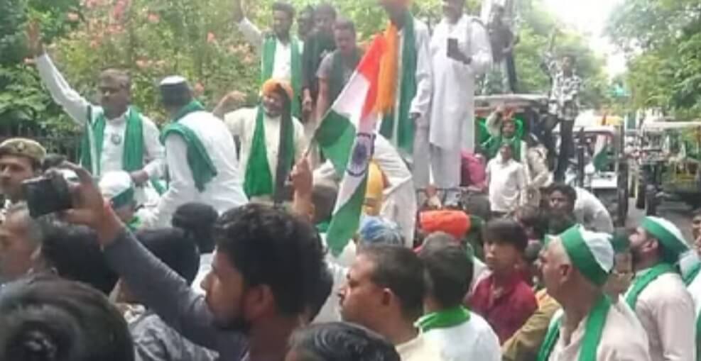 मथुरा में विभिन्न लंबित मांगों को लेकर भारतीय किसान यूनियन टिकैत के सदस्यों ने जिला मुख्यालय पर जोरदार प्रदर्शन किया। ट्रैक्टर लेकर कलेक्ट्रेट की तरफ निकले किसानों को प्रशासन ने रोकने का प्रयास किया लेकिन यह नाकाम रहा। किसान अपने ट्रैक्टर लेकर कलेक्ट्रेट में घुस आए और धरने पर बैठ गए। किसानों के प्रदर्शन के चलते कलेक्ट्रेट रोड पर जाम लग गया। सैकड़ों वाहन जाम में फंसे रहे। राधा कुंड में जल भराव समेत 8 सूत्री मांगों को लेकर भारतीय किसान यूनियन टिकैत ने जिला मुख्यालय पर जोरदार प्रदर्शन किया। ट्रैक्टर पर सवार होकर किसान कलेक्ट्रेट पहुंचे। परिसर में अंदर घुसने का प्रयास किया। अधिकारियों ने उन्हें रोकना चाहा तो किसानों की अधिकारियों से नोकझोंक हो गई। किसान नेताओं के सामने अधिकारियों की एक न चली। किसान नेता गेट खोलकर कलेक्ट्रेट में घुस गए। परिसर में अंदर ही धरने पर बैठ गए। प्रदर्शन के दौरान किसान नेताओं ने शासन प्रशासन के खिलाफ जमकर नारेबाजी की। भूमाफियाओं से जमीन को कब्जा मुक्त करने की मांग की । किसानों के प्रदर्शन की वजह से कलेक्ट्रेट रोड पर जाम लग गया। सैकड़ो की संख्या में वाहन चालक जाम में फंसे रहे। किसान नेताओं ने ऐलान किया है कि जब तक उनकी मांगे ने नहीं मानी जाएगी उनका प्रदर्शन जारी रहेगा।