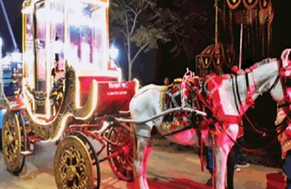 मथुरा। ब्रज की नगरी में अनोखी परंपरा देखने को मिली। यहां बुधवार को एक शादी समारोह में बरात आई थी, जिसमें दुल्हन को बग्गी पर बैठाकर लोग डांस करते चल रहे थे। यमुना किनारे लक्ष्मी नगर में एक व्यक्ति की बेटी की शादी थी। पलवल से लड़के वाले बरात लेकर पहुंचे तो रात 10 बजे के समय बरात चढ़ने के लिए तैयार थी। दूल्हा बग्गी में बैठकर चल रहा था, उधर सोलह शृंगार में सजी दुल्हन को भी बग्गी में बिठाकर समारोह स्थल तक ले जाया गया। दूल्हा व दुल्हन दोनों तरफ के शादी में शामिल हुए लोग नाचते-झूमते चल रहे थे। सोशल मीडिया पर इसका वीडियो वायरल हो रहा है।