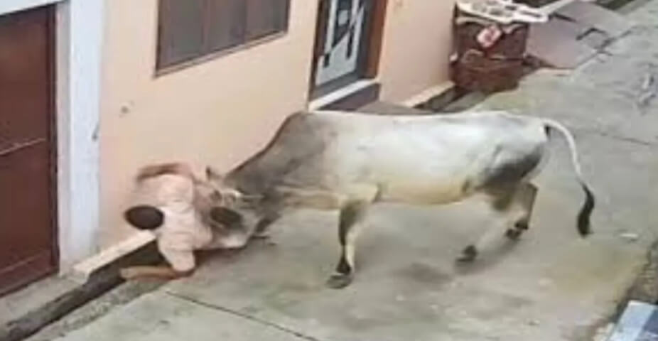 बाजार से गुजरते युवक पर सांड़ ने बोला हमला, सींग घुसाकर फाड़ दिया पेट; हालत है गंभीर