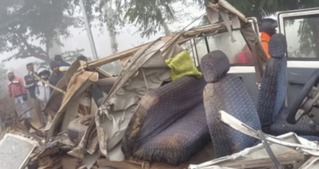 घने कोहरे में बस ने 10 मीटर तक कार को घसीटा