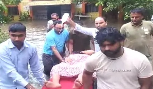 मथुरा। फराह में बीते 36 घंटे से हो रही निरंतर बारिश से हाल-बेहाल हो गए हैं। बारिश थमने का नाम नहीं ले रही। जनपद के फरह कस्बा स्थित सामुदायिक स्वास्थ्य केंद्र में पानी भर जाने से वहां भर्ती मरीजों को मुश्किल स्ट्रेचर पर लिटाकर जिला अस्पताल शिफ्ट करना पड़ा है। सामुदायिक स्वास्थ्य केंद्र में भरा बारिश का पानी और मरीजों को स्ट्रेचर पर ले जाते वायरल वीडियो को देखकर लोग द्रवित हो उठे हैं। कस्बा फरह के सामुदायिक स्वास्थ्य केंद्र में बारिश के चलते मरीजों को जिला अस्पताल शिफ्ट करना पड़ा है मरीज और उनके तीमारदार बहुत परेशान हुए है । क़स्बा फरह के सामुदायिक स्वास्थ्य केंद्र में पिछले 36 घंटे से हो रही वारिस के चलते बारिश का पानी अस्पताल में भर गया। जिससे मरीजों को भारी दिक्कतों का सामना करना पड़ा।