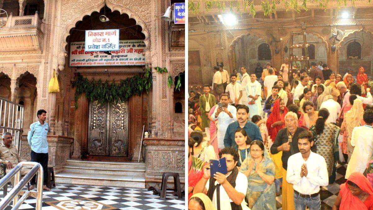 सूर्यग्रहण के कारण देशभर में दीपावली का पर्व एक दिन मनाया गया, तो मंदिरों में भी दर्शन समय में परिवर्तन देखने को मिला। सूर्यग्रहण से 12 घंटे पहले सुबह 4.30 पर सूतककाल शुरू हो गया। जिसके कारण मंदिरों में सूतककाल से पहले ठाकुरीजी की सेवा हुई। ऐसे में ठा. बांकेबिहारीजी ने रात डेढ़ बजे भक्तों को दर्शन देने शुरू कर दिए। सुबह श्रृंगार आरती, राजभोग अर्पित करने और राजभोग आरती के बाद सुबह 4 बजे मंदिर के पट बंद हो गए। तो शाम को ग्रहणकाल खत्म होने के बाद 7.15 बजे ही भक्तों को आराध्य के दर्शन सुलभ हो सके। ऐसे में कार्तिक अमावस के दिन भर मंदिरों के पट बंद रहे और मंदिरों के आसपास जिन इलाकों में भक्तों की भीड़ के कारण कदम रखने तक को जगह नहीं होती थी, वहां आज सन्नाटा पसरा रहा।