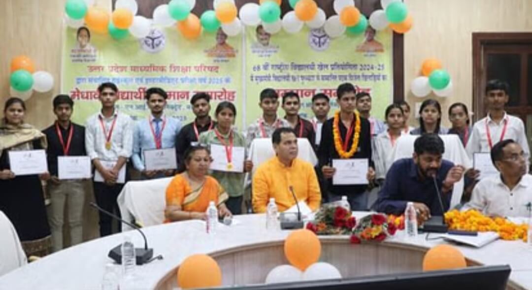 मथुरा। यूपी बोर्ड के हाईस्कूल और इंटरमीडिएट के मेधावियों को बृहस्पतिवार को कलेक्ट्रेट सभागार में जनप्रतिनिधियों और अधिकारियों ने सम्मानित किया। अतिथियों ने मेडल पहनाकर, 21 हजार की पुरस्कार राशि का चेक और टैबलेट देकर सम्मान किया। वहीं, अमर उजाला की ओर से भी मेधावियों का सम्मान किया गया। सम्मान पाकर मेधावियों के चेहरे खिल गए। कलेक्ट्रेट सभागार में सुबह 11 बजे आयोजित कार्यक्रम की शुरुआत लखनऊ में आयोजित मुख्यमंत्री के कार्यक्रम के प्रसारण से हुई। सभागार में मुख्य अतिथि विधायक श्रीकांत शर्मा, अपर जिलाधिकारी पंकज वर्मा, जिला विद्यालय निरीक्षक रविंद्र सिंह ने हाईस्कूल और इंटरमीडिएट के 10-10 मेधावियों को पुरस्कृत किया। विधायक शर्मा ने मेधावियों को संबोधित करते हुए कहा कि आपने जो मेहनत की है उसका यह परिणाम है जो आपको यहां सम्मान मिला है। आप में से ही कोई आईएएस, आईपीएस, डाॅक्टर, इंजीनियर बनकर देश की सेवा करेगा। विधायक ने कहा कि आपकी मेहनत के लिए अमर उजाला ने भी आपको मेडल और प्रमाण पत्र से नवाजा है। कार्यक्रम संचालन कविता सक्सेना ने किया।